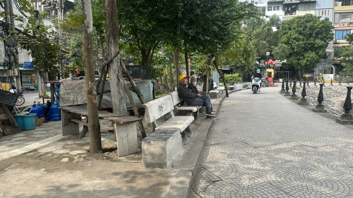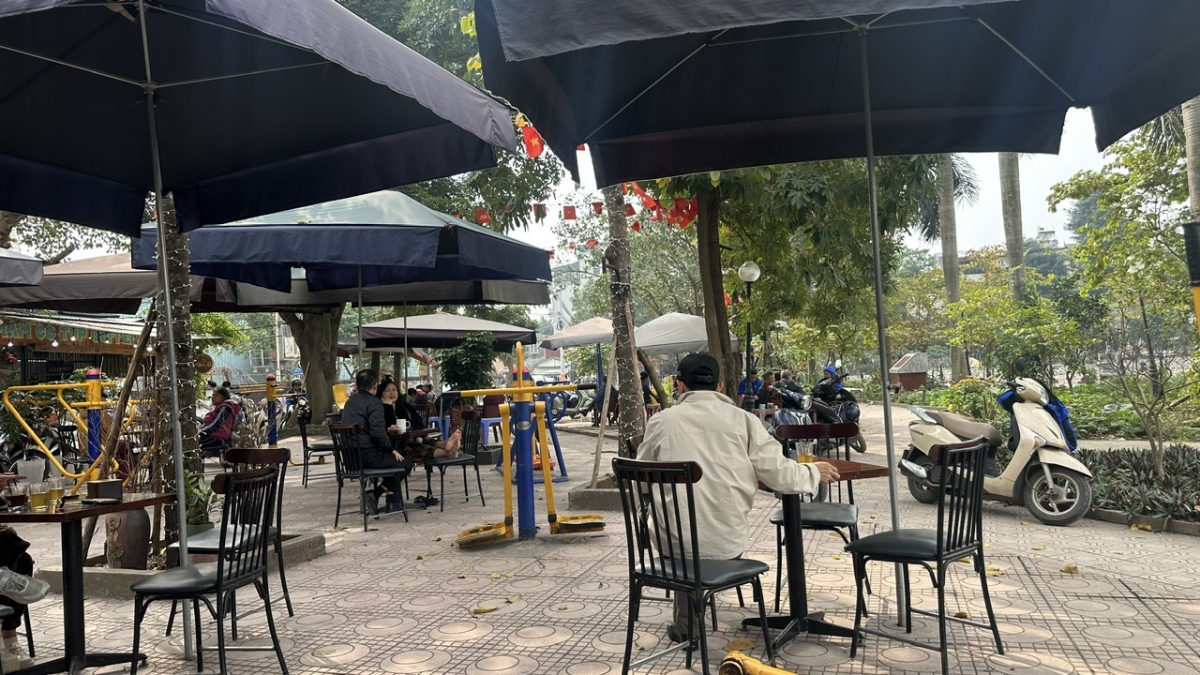 Ông Thành một người dân sinh sống trên phố Vĩnh Hưng nói: "Người dân chúng tôi đi thể dục thấy thiết bị tập bỏ không cũng tiếc, nhưng ngại vào tập vì khách người ta ngồi uống nước như thế mình vào tập trông thấy bất tiện".