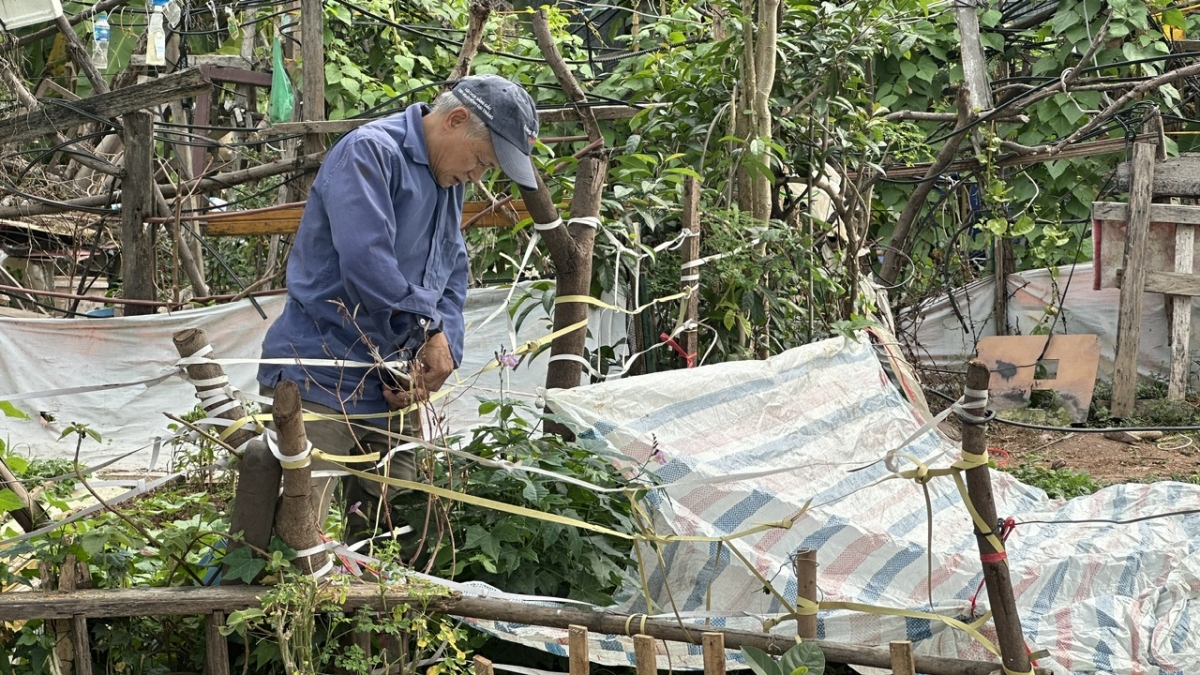 Người dân quây rào, dùng bạt cải tạo thành vườn trồng rau ngay sát khu vực đường dạo.