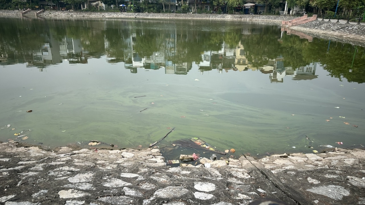 Nước trong hồ có dấu hiệu ô nhiễm.