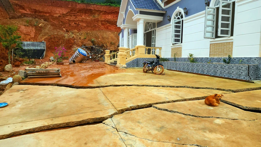 Chủ căn biệt thự mới xây vài tháng phải dời đi đi nơi sáng sinh sống để để đảm bảo an toàn. Ảnh VT.