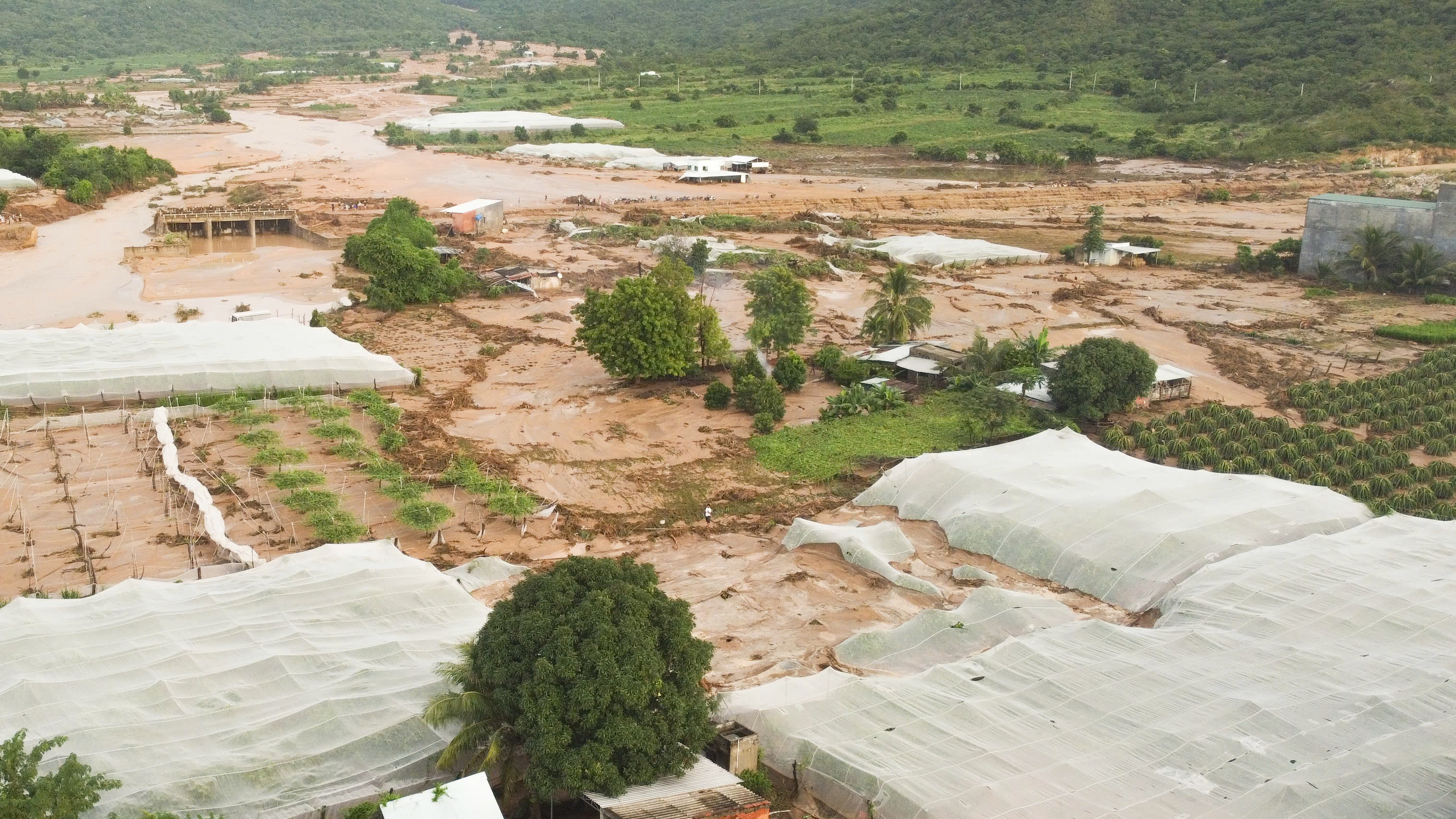 Đến 13h cùng ngày, tổ công tác phụ trách việc kiểm tra hiện trạng hồ chứa của Công ty Trang Trại Việt vẫn chưa tiếp cận được hồ bị vỡ do đường núi sạt lở nặng.