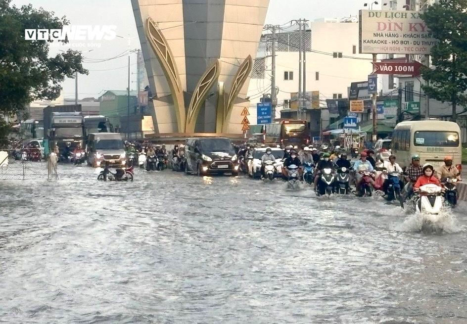 Cụ thể, tại TP.HCM, khu vực Thanh Đa, Thảo Điền, nước tràn vào nhà dân, ngập cao cả mét. Các tuyến đường như: Trần Xuân Soạn, quốc lộ 13, Kha Vạn Cân... cũng ngập nặng vào chiều tối và sáng sớm - đúng giờ cao điểm người dân đi lại khiến ùn tắc kéo dài.