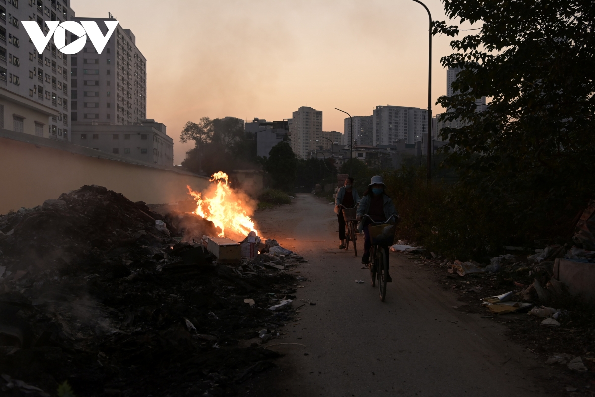 Khói nghi ngút ở cuối con đường tràn ngập rác