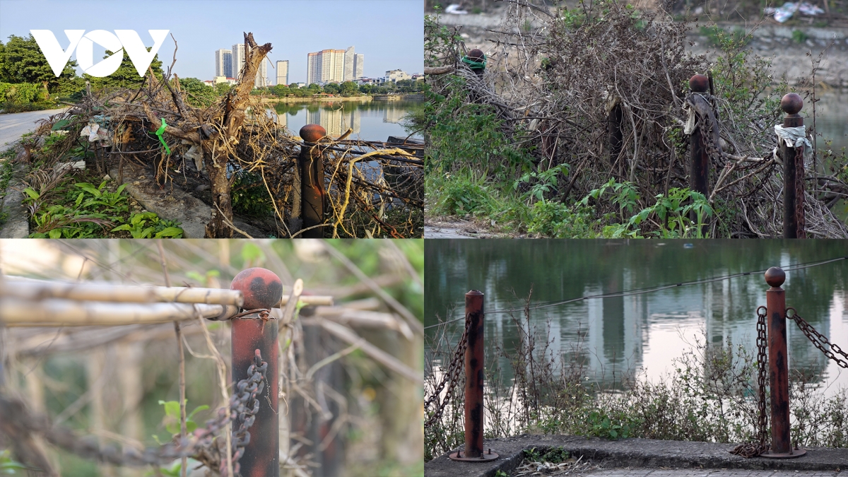Theo phản ánh của người dân và ghi nhận của phóng viên, xung quanh hồ điều hòa đã được xây dựng đường dạo, phía ngoài giáp đường giao thông trồng nhiều cây xanh. Phía sát hồ cũng được lắp đặt hệ thống cột sắt và dây xích bảo vệ. Tuy nhiên, do thời gian dài không được bảo dưỡng, phần lớn cột sắt và dây xích đã bị rỉ sét, nhiều cột bị đổ xuống phía lòng hồ, dây xích bị đứt gãy, tiềm ẩn nguy cơ mất an toàn.