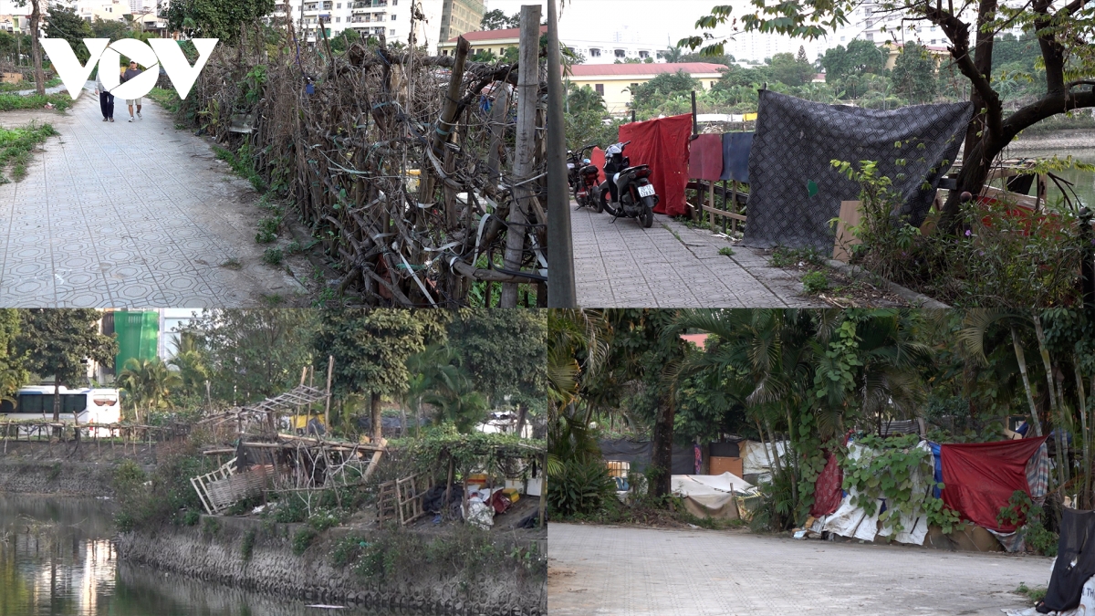 Đáng chú ý, nhiều hộ dân sống gần khu vực hồ đã chiếm dụng các bãi đất trống trong khuôn viên công trình để trồng rau. Một số hộ còn dựng giàn trồng bầu, bí, mướp vươn ra phía hồ, làm mất mỹ quan. Không ít vị trí quanh hồ bị căng bạt che chắn để bảo vệ rau màu. Rác thải sinh hoạt và rác trong quá trình trồng trọt bị xả trực tiếp xuống hồ hoặc bỏ ngay trên đường dạo ven hồ, gây ô nhiễm môi trường.