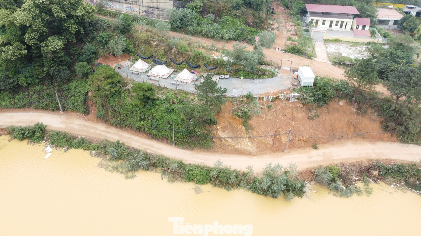Các công trình xẻ núi, bạt đồi tại khu vực xung quanh hồ Đồng Đò. Theo đơn vị quản lý, đây là một trong những nguyên nhân chính khiến nước chảy xối xả, sạt lở, cô lập thôn Minh Tân vừa qua. TS. Đào Minh Đức, Viện Địa chất, Viện Hàn lâm KH&CN Việt Nam cho biết, sạt lở đất tại khu vực hồ Đồng Đò được hình thành từ tổ hợp nhiều yếu tố tự nhiên và nhân sinh. Trong đó, mưa lớn đóng vai trò là yếu tố kích hoạt trực tiếp, thúc đẩy quá trình trượt.