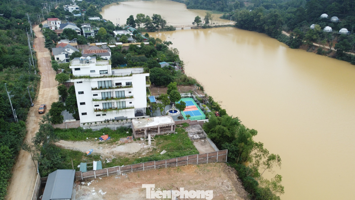 Nước hồ vốn trong xanh nay đổi màu vàng đục do xuất hiện nhiều điểm sạt lở sau 2 cơn bão số 10 và số 11.