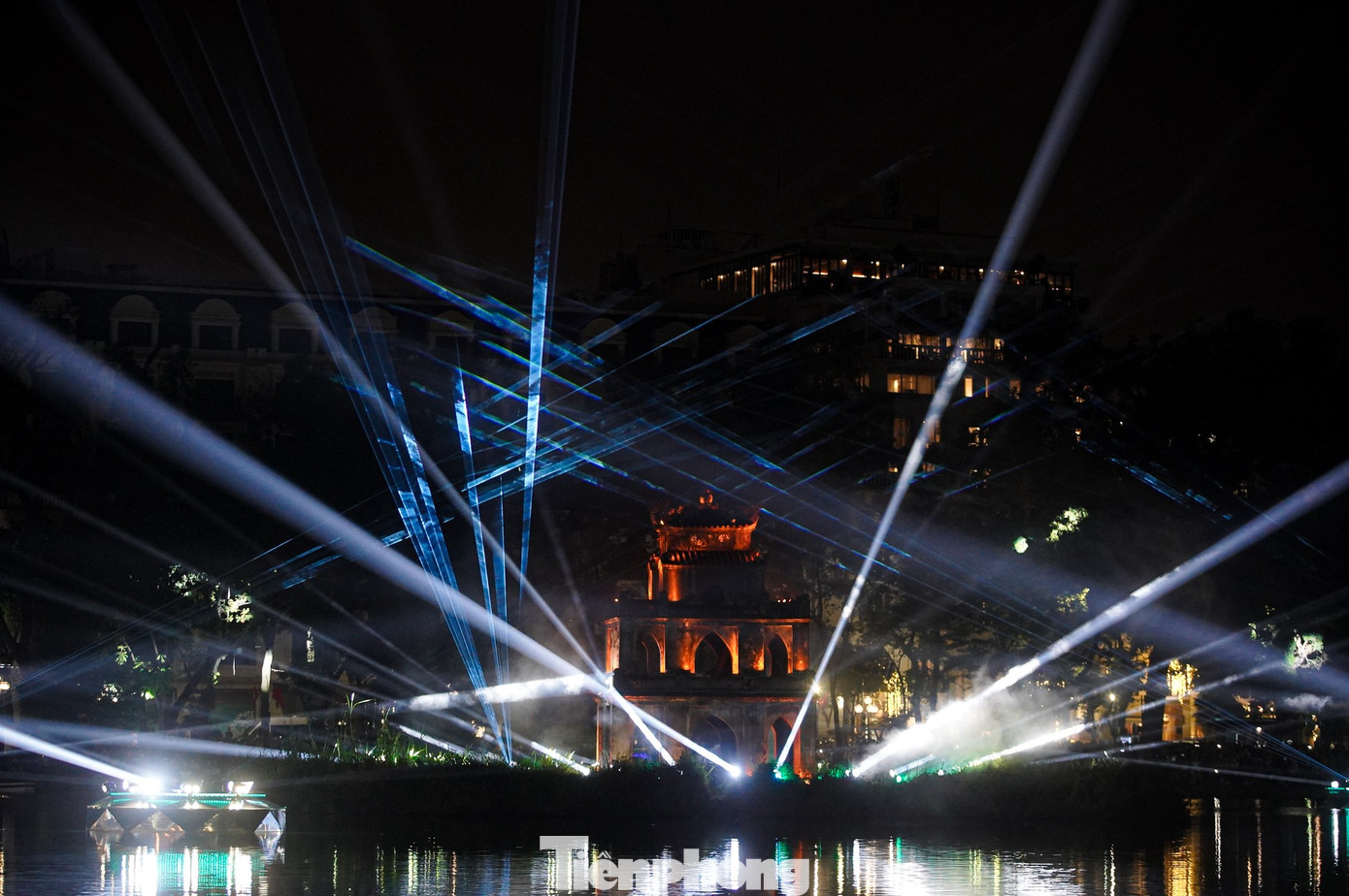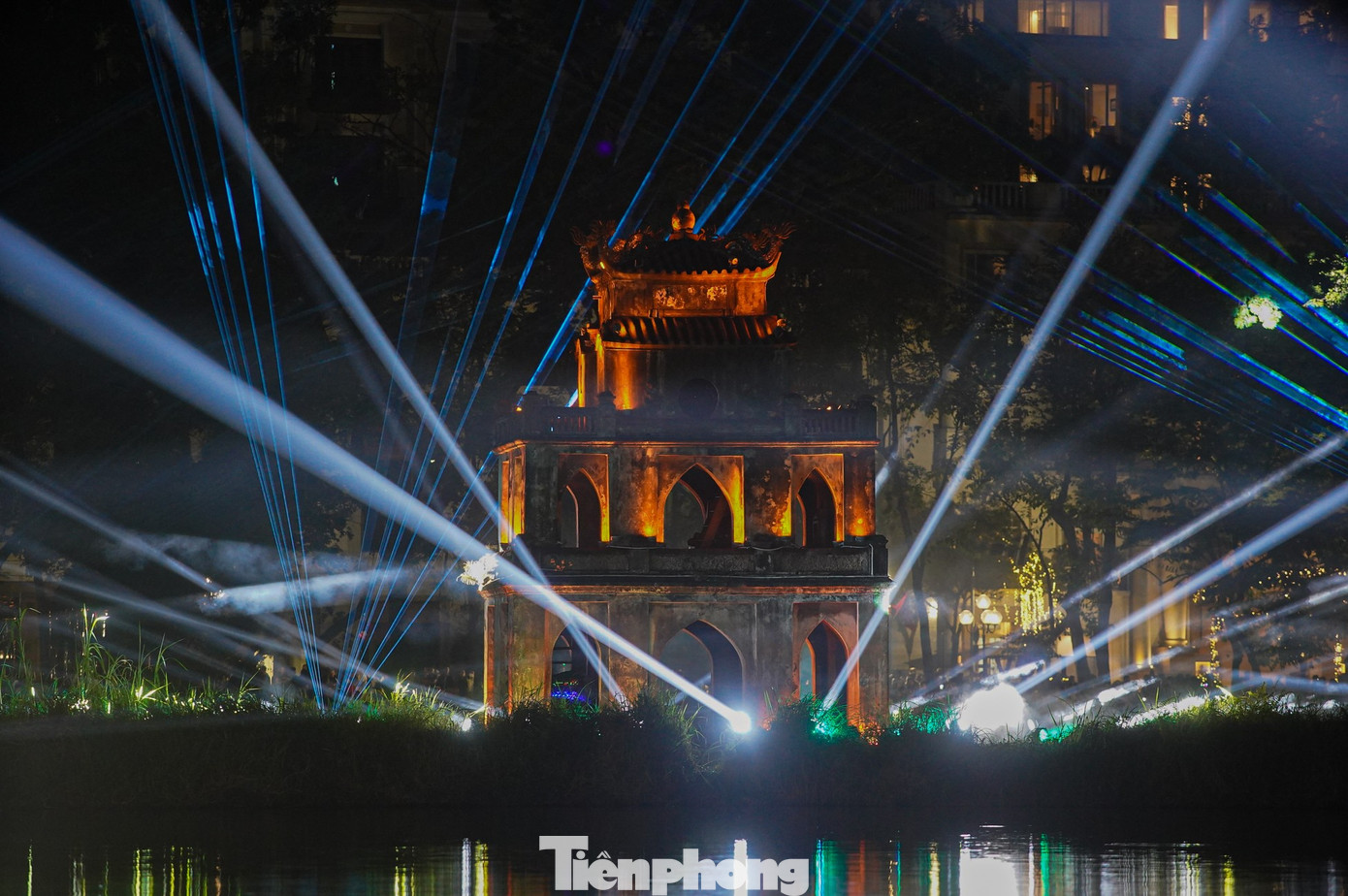 Ánh sáng được sử dụng như một ngôn ngữ nghệ thuật đương đại, thắp lên vẻ đẹp lung linh, ấm áp nhưng vẫn trang trọng của Tháp Rùa – biểu tượng văn hóa lịch sử giữa lòng Hà Nội.