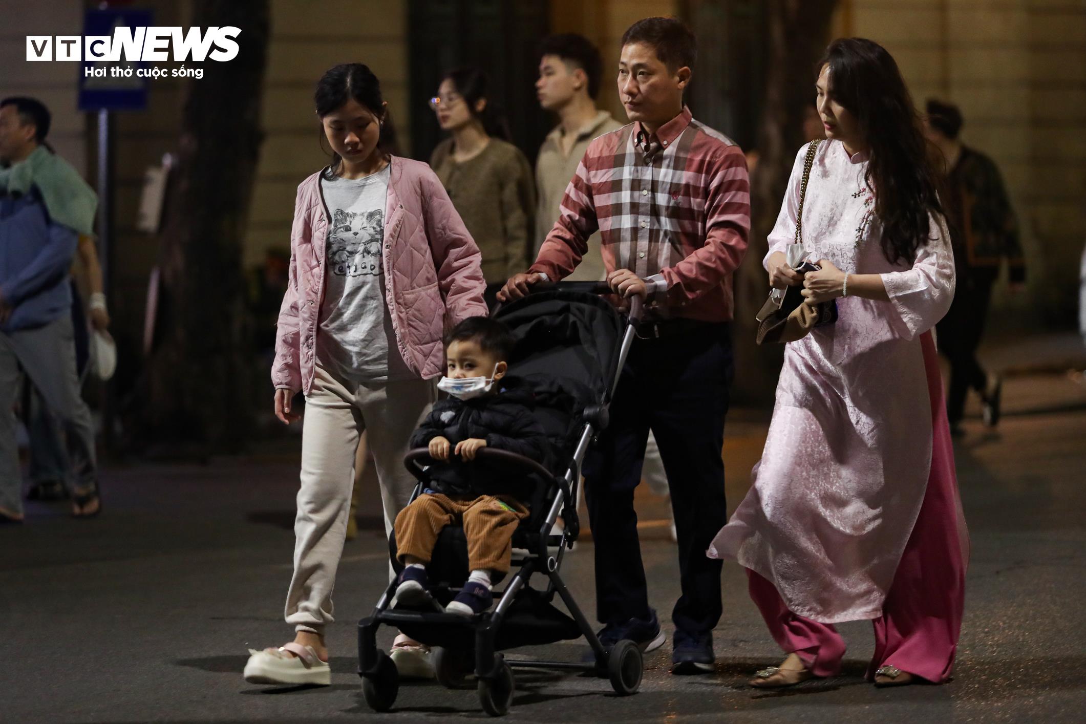 Càng gần thời khắc giao thừa, lượng người đổ về khu vực quanh Hồ Gươm càng tăng, không khí trở nên đông đúc hơn.