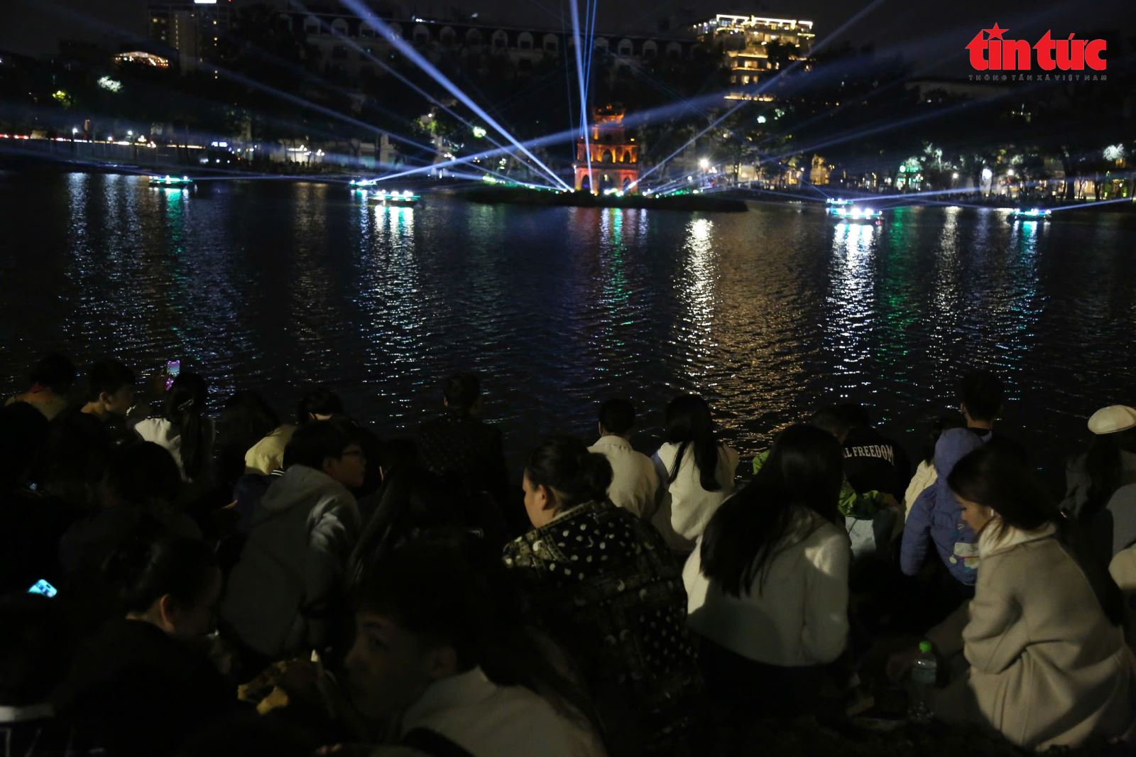 Các gia đình cũng háo hức đến Hồ Hoàn Kiếm đón giao thừa.