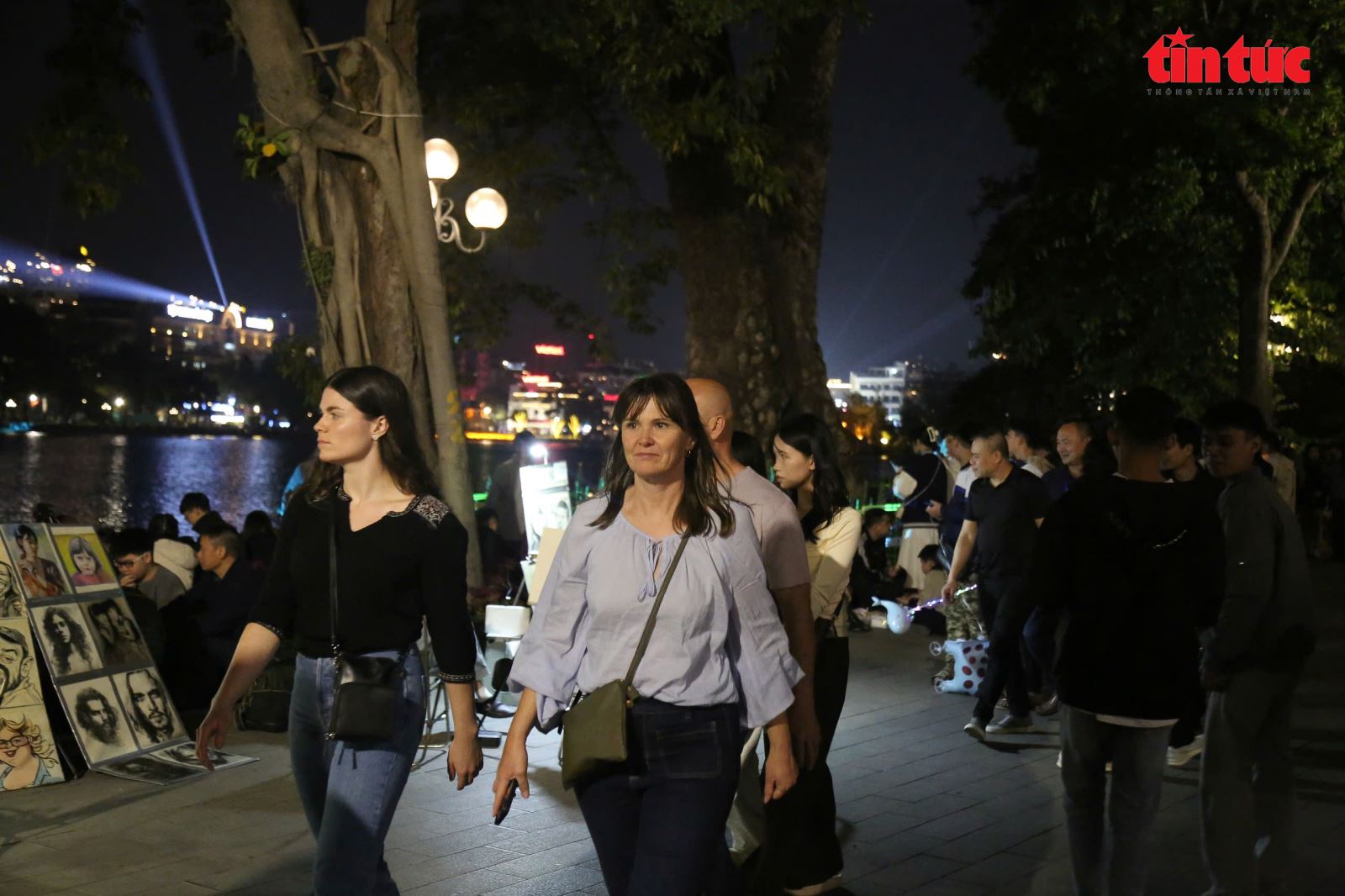 Du khách quốc tế cũng hòa nhịp bước giữa không gian Hồ Gươm rực rỡ sắc màu ngày cuối năm.