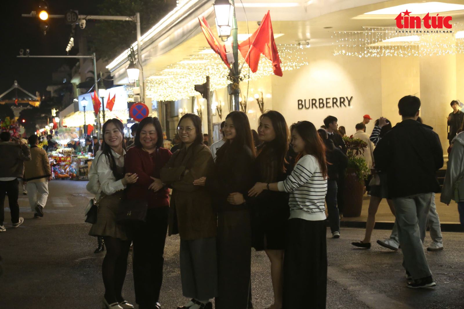 Các tuyến phố quanh Hồ Gươm như Đinh Tiên Hoàng, Hàng Khay, Lê Thái Tổ… ken đặc người đi bộ. Những nhóm bạn trẻ tay cầm cờ, bóng bay, phụ kiện phát sáng tranh thủ ghi lại những khoảnh khắc đáng nhớ. Nhiều gia đình đưa con nhỏ dạo quanh hồ, vừa tản bộ vừa cảm nhận rõ nét không khí lễ hội đang lan tỏa khắp từng góc phố.
