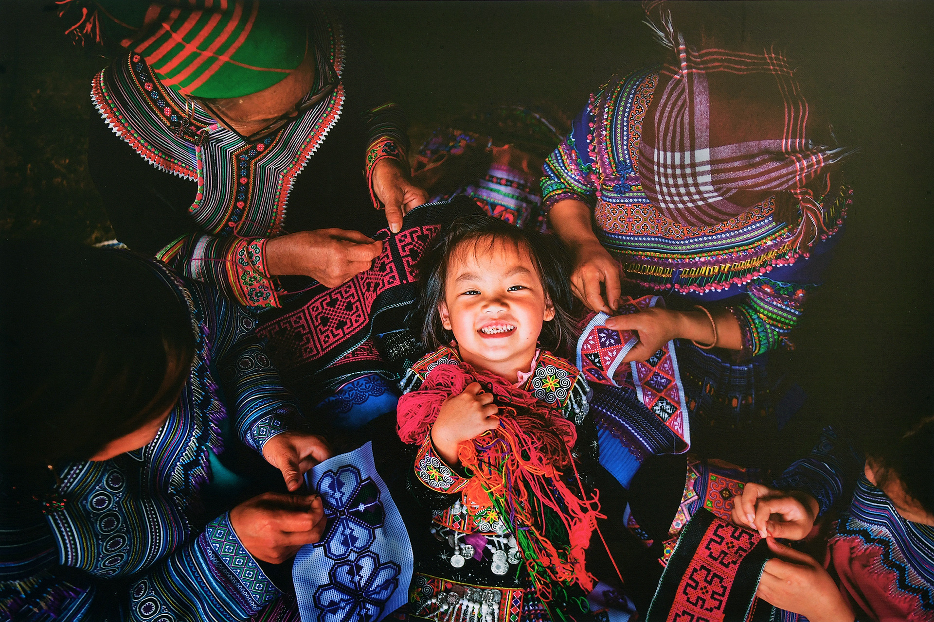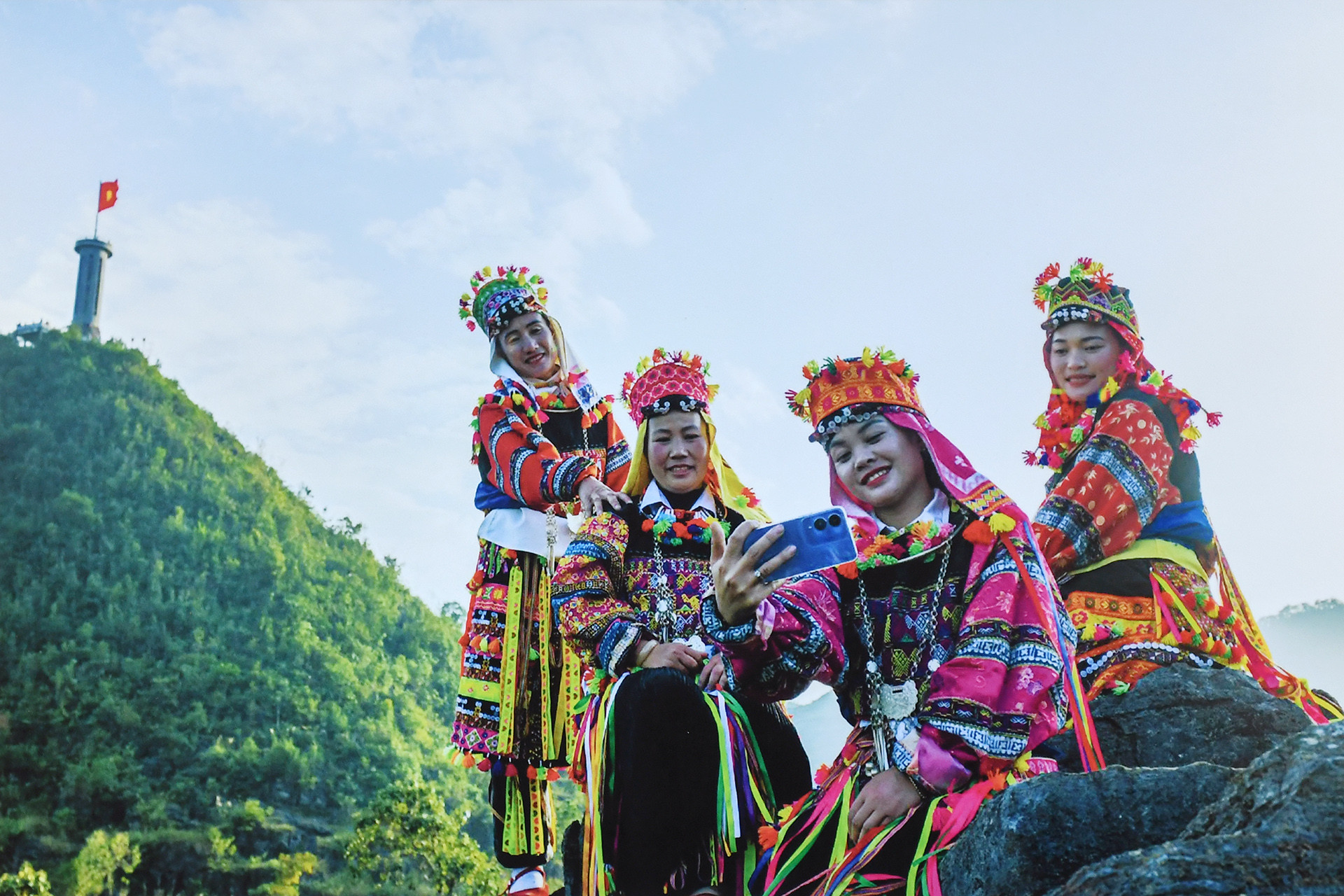 Tác phẩm: "Công nghệ về bản" ghi lại cảnh các cô gái ở bản Lô Lô Chải ngồi trên sườn núi Lũng Cũ thích thú với chiếc điện thoại thông minh của Phạm Quang Thanh.