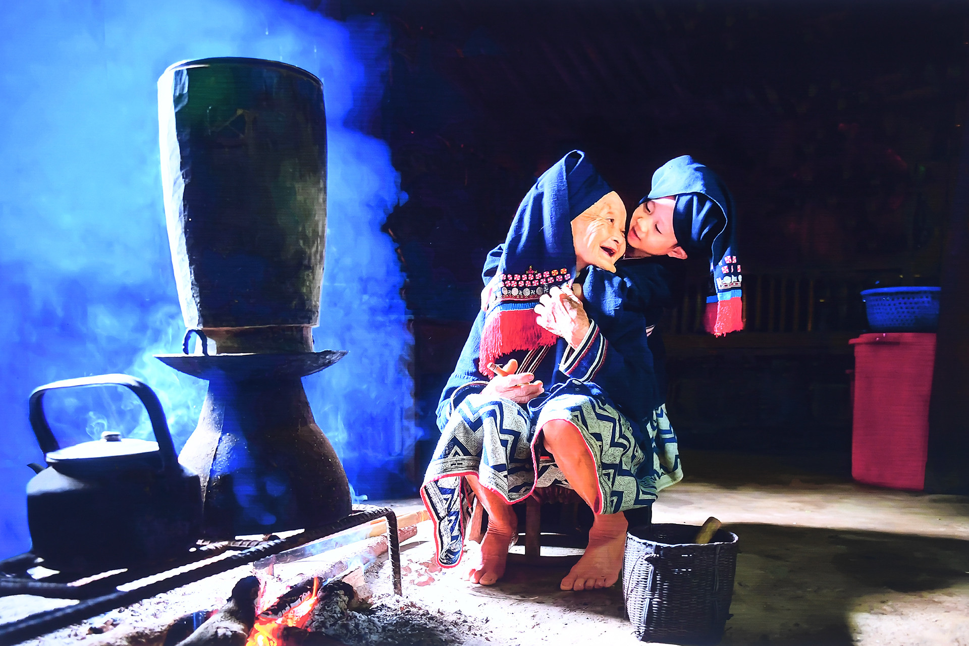 Tác phẩm: "Niềm vui bên bếp lửa" ghi lại cảnh hai bà cháu dân tộc thiểu số ở Phú Thọ của Đào Văn Trà.