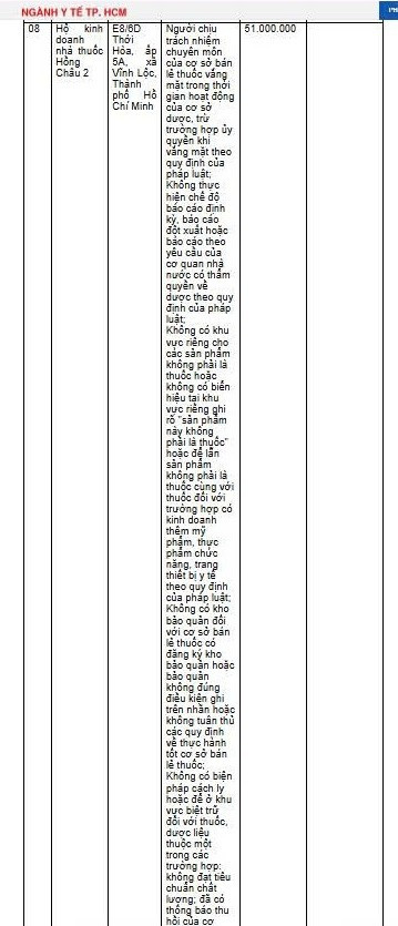 Sở Y tế TP HCM công khai xử phạt Hộ kinh doanh nhà thuốc Hồng Châu 2/Ảnh chụp màn hình