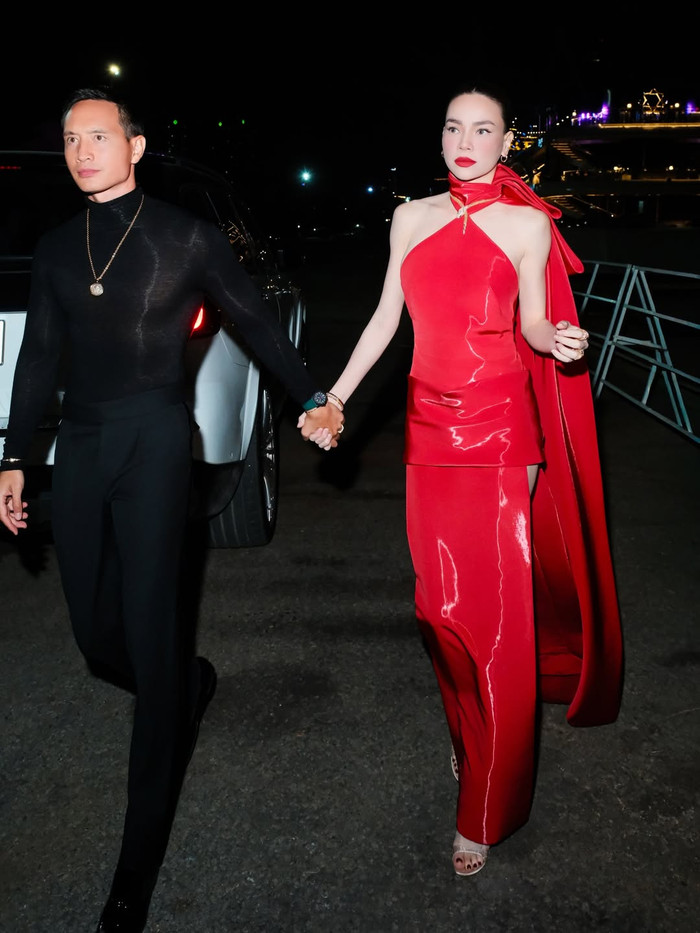 Sánh đôi cùng Hồ Ngọc Hà, Kim Lý diện trang phục tối màu, phong cách đơn giản nhưng lịch lãm. Khoảnh khắc đầy tình tứ của cả hai nhanh chóng nhận được sự quan tâm của khán giả.