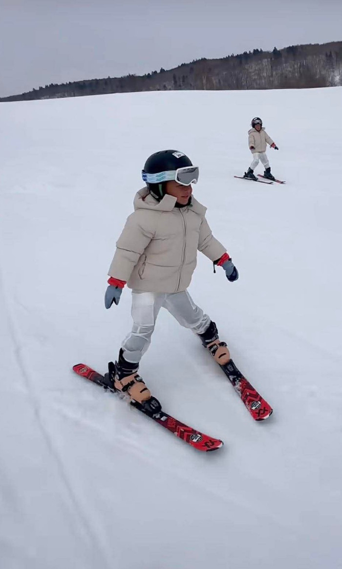 2 nhóc tỳ của Hồ Ngọc Hà và Kim Lý trổ tài trượt tuyết thuần thục trong chuyến du lịch dịp Tết cùng gia đình.