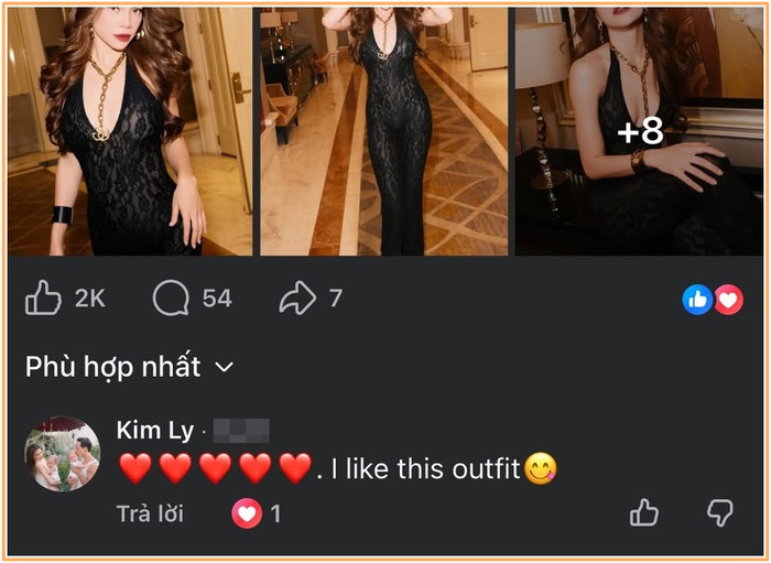 Sau đêm nhạc, Hồ Ngọc Hà nhanh chóng chia sẻ loạt hình ảnh ghi lại khoảnh khắc đáng nhớ trong bộ trang phục này lên trang cá nhân. Dưới phần bình luận, Kim Lý, bạn đời của cô, gây chú ý khi để lại lời nhắn ngắn gọn bằng tiếng Anh: “I like this outfit” (Tạm dịch: Anh rất thích bộ trang phục em mặc). Dù chỉ là một câu nói đơn giản, động thái này lại thu hút sự quan tâm đặc biệt từ cộng đồng mạng.