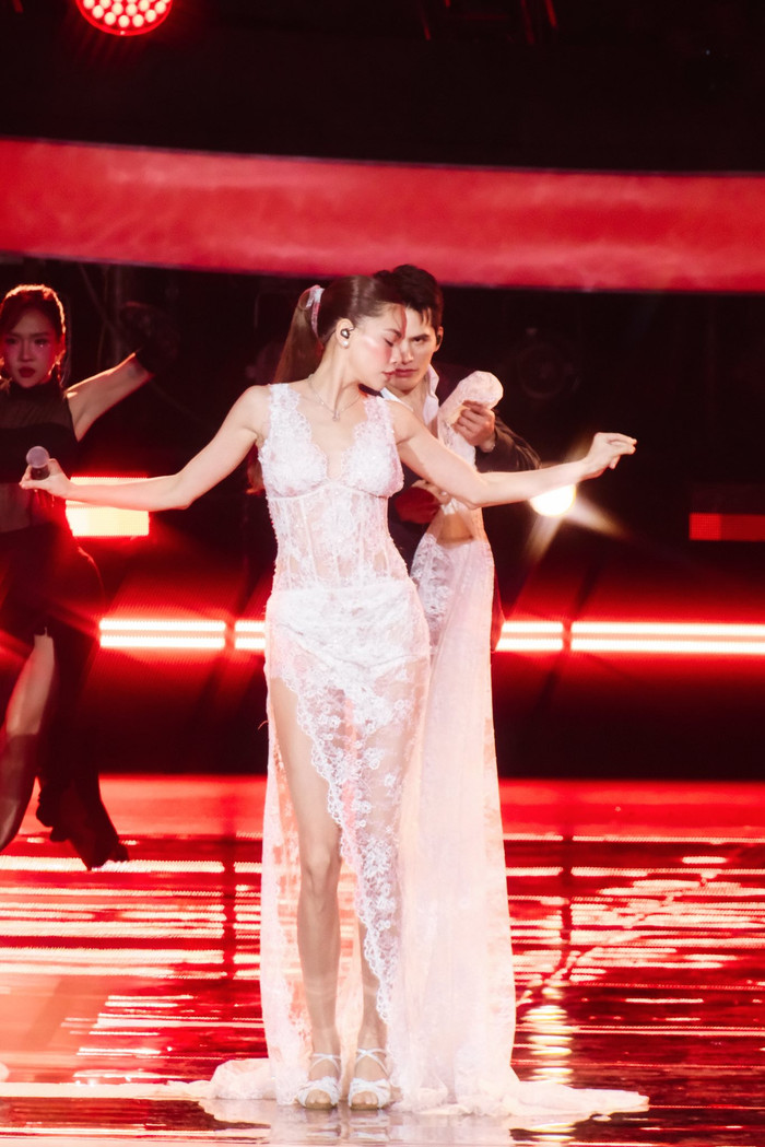 Hồ Ngọc Hà diện váy ren xuyên thấu, khoe trọn nét đẹp quyến rũ trên sân khấu. (Ảnh FBNV)