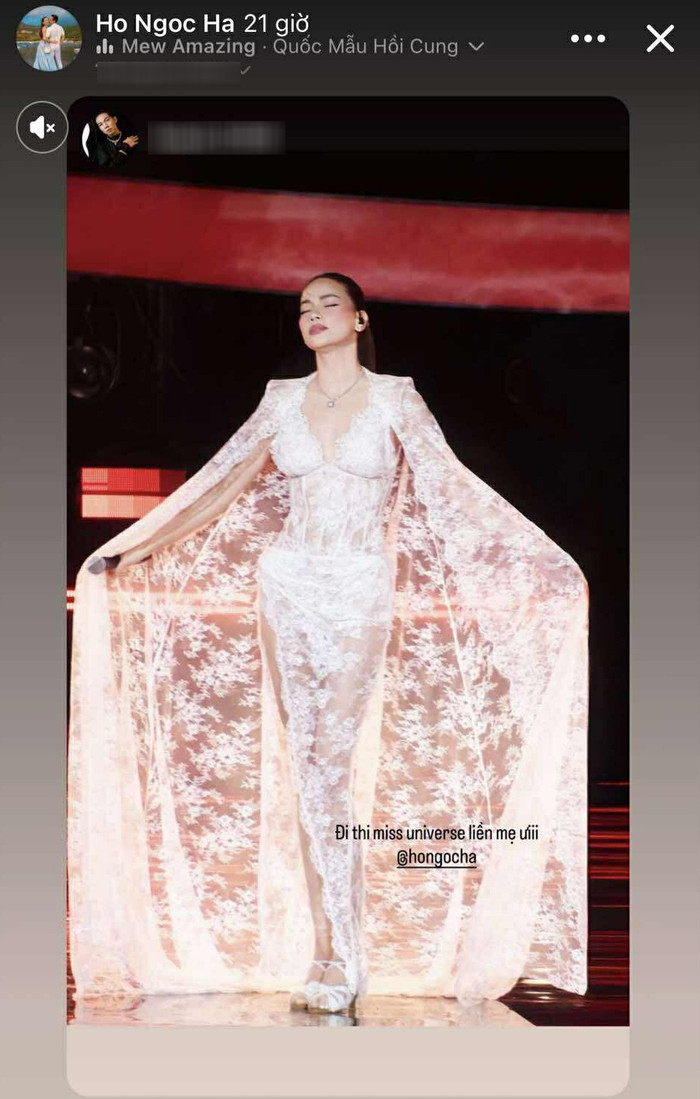 Đặc biệt, khoảnh khắc Hồ Ngọc Hà tự tin sải bước, biểu cảm thăng hoa đã khiến nhiều người hâm mộ thích thú. Một khán giả còn hài hước đăng tải lại hình ảnh kèm dòng chú thích: “Đi thi Miss Universe liền chị ơi”.