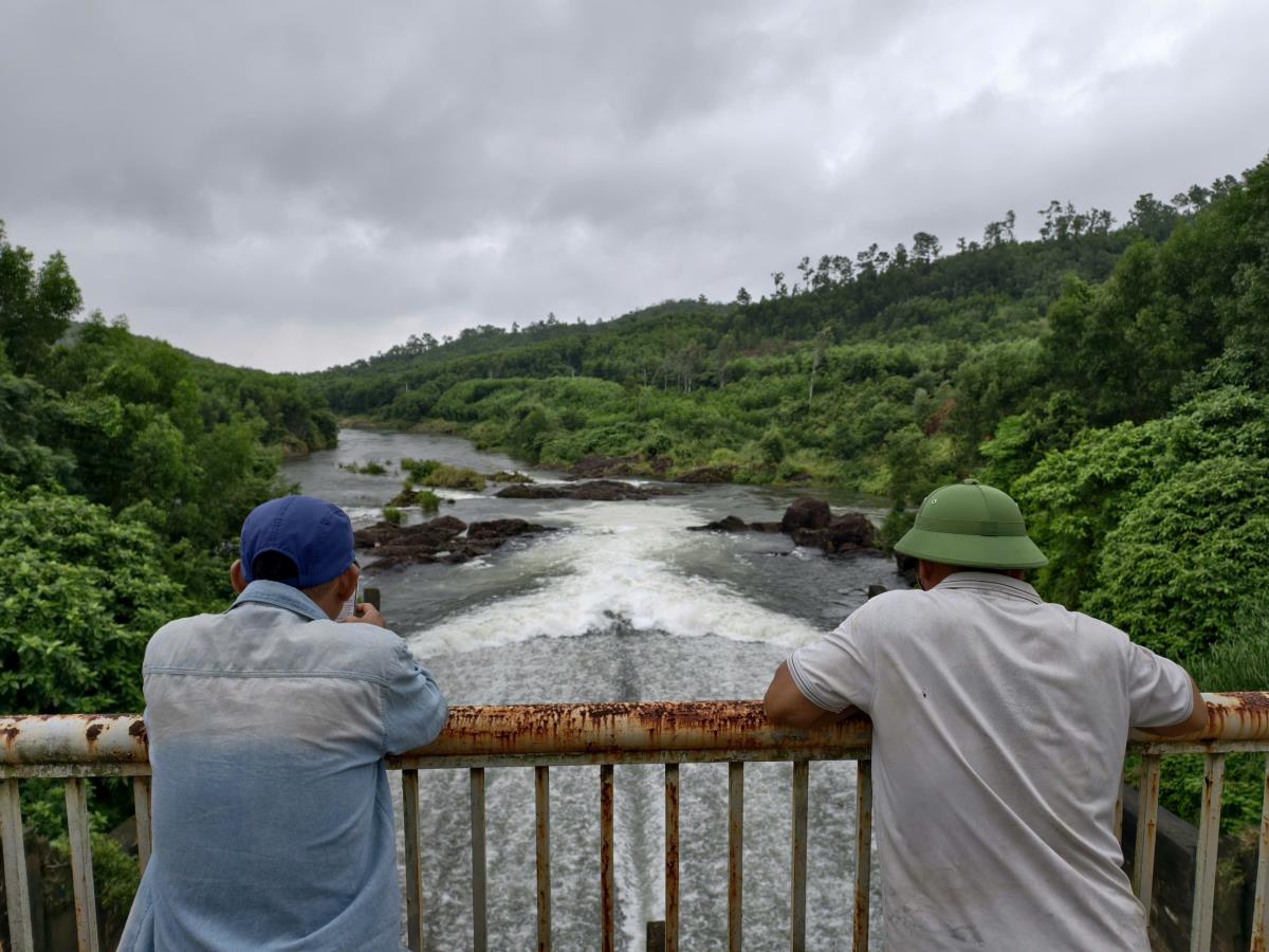 Người dân địa phương đến xem hồ Phú Ninh xả lũ.