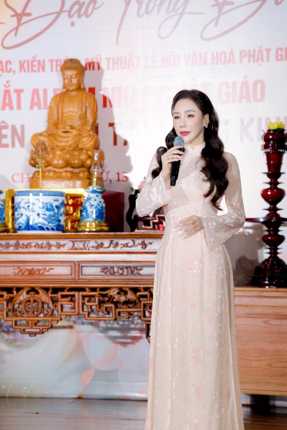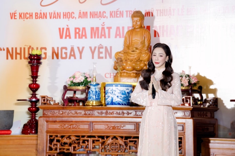 Hồ Quỳnh Hương tại buổi ra mắt album "Những ngày yên - Tịnh tâm cùng Kinh Phật" ở Chùa Quán Sứ, Hà Nội.