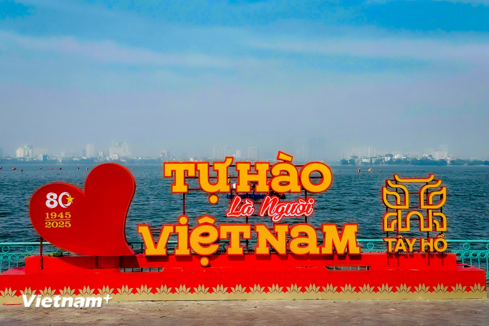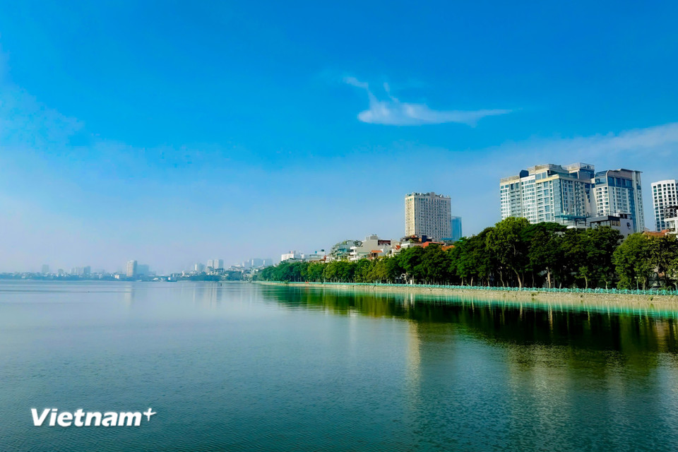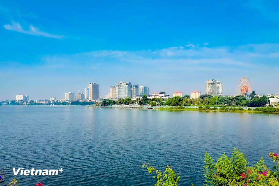 Sóng nước hồ Tây in soi vóc dáng đô thị Hà Nội khang trang, hiện đại. (Ảnh: Trần Hương Sơn/Vietnam+)
