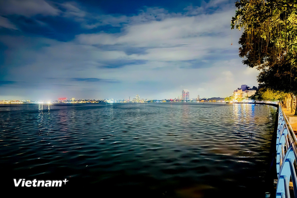 Hồ Tây mang trong mình một sức hút kỳ lạ, nhưng có lẽ đêm mới là khoảnh khắc khiến lòng người say đắm nhất. (Ảnh: Trần Hương Sơn/Vietnam+)