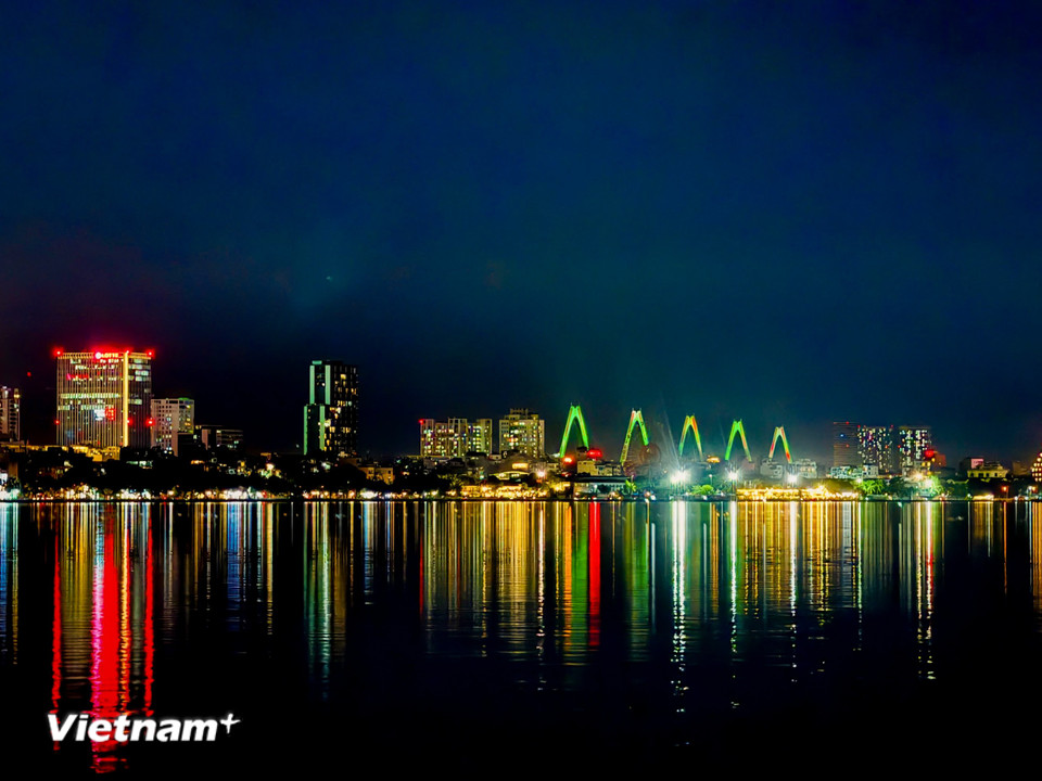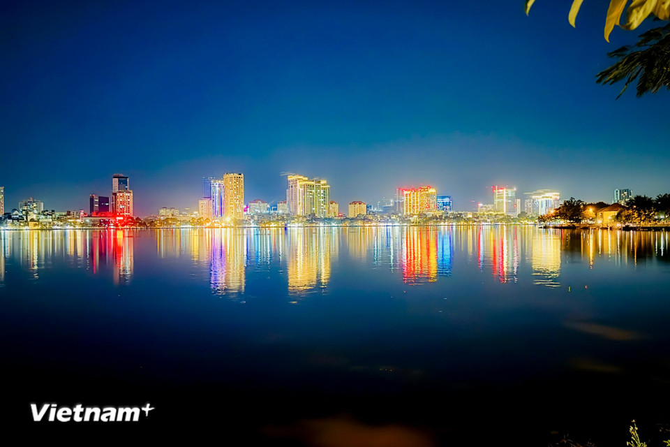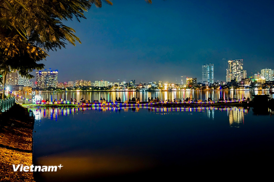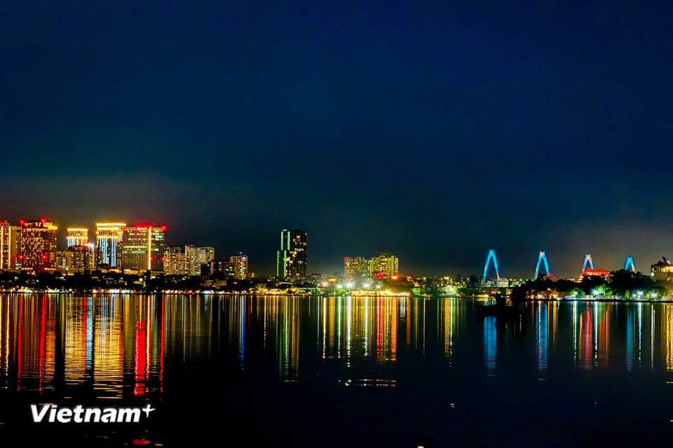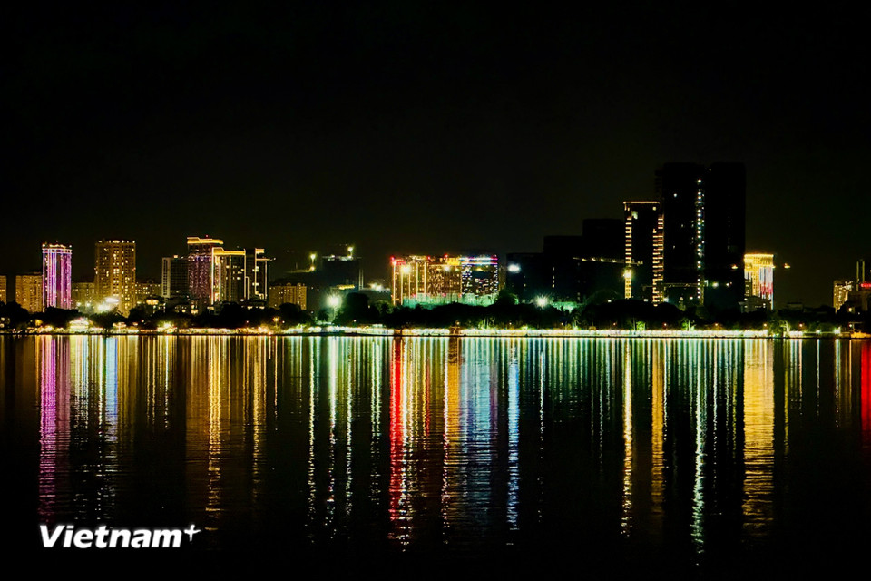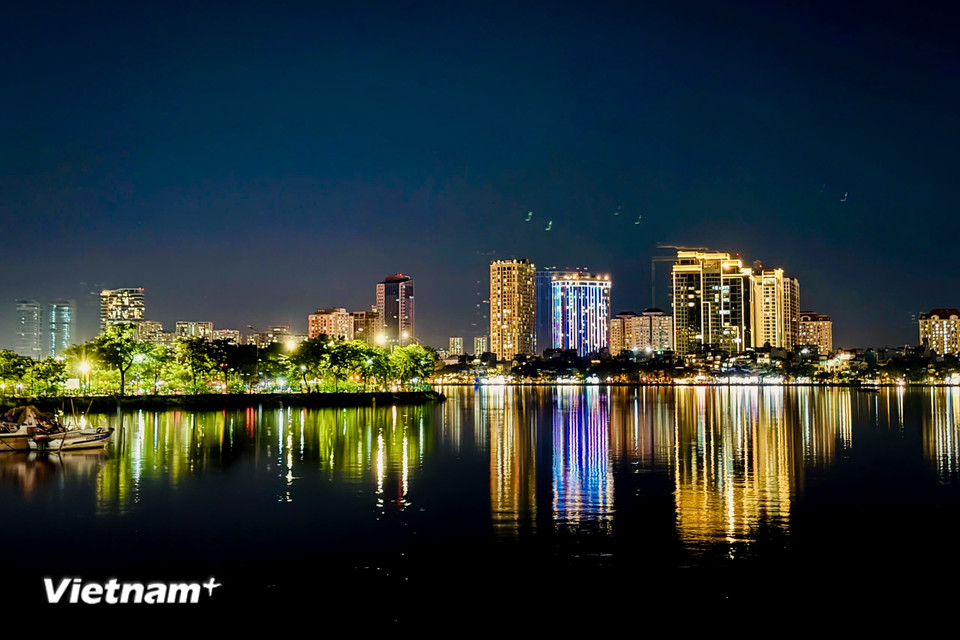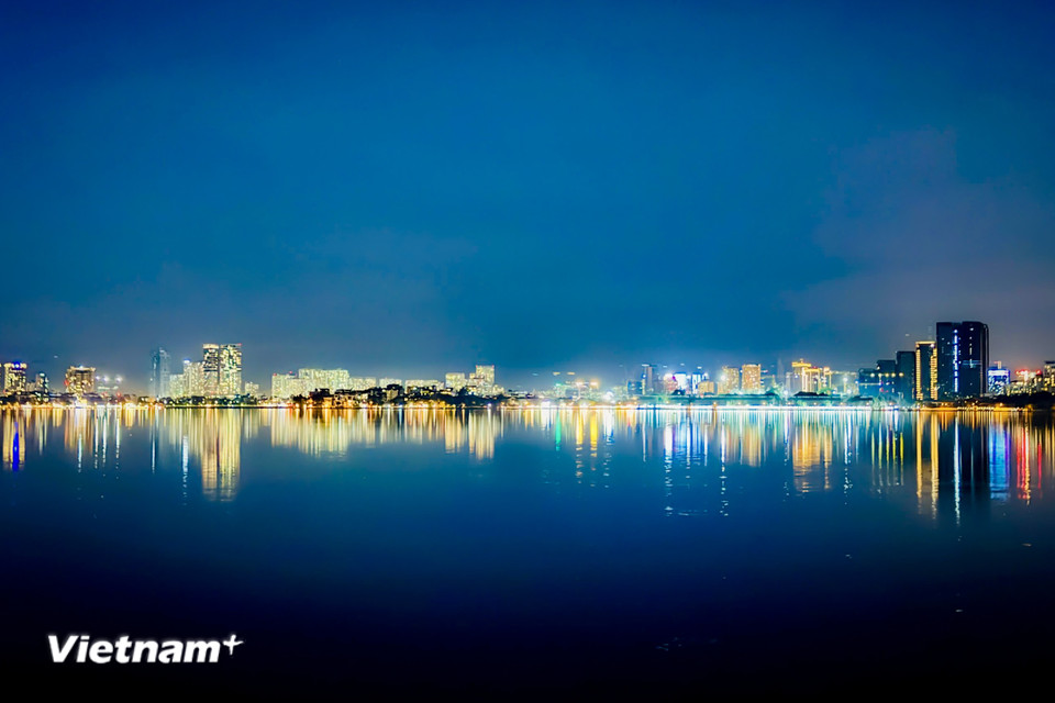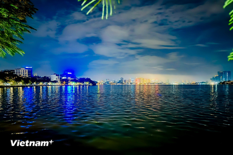 Hồ Tây về đêm mang đến một vẻ đẹp huyền bí và lãng mạn, với không gian yên tĩnh và cảnh sắc tuyệt vời. (Ảnh: Trần Hương Sơn/Vietnam+)