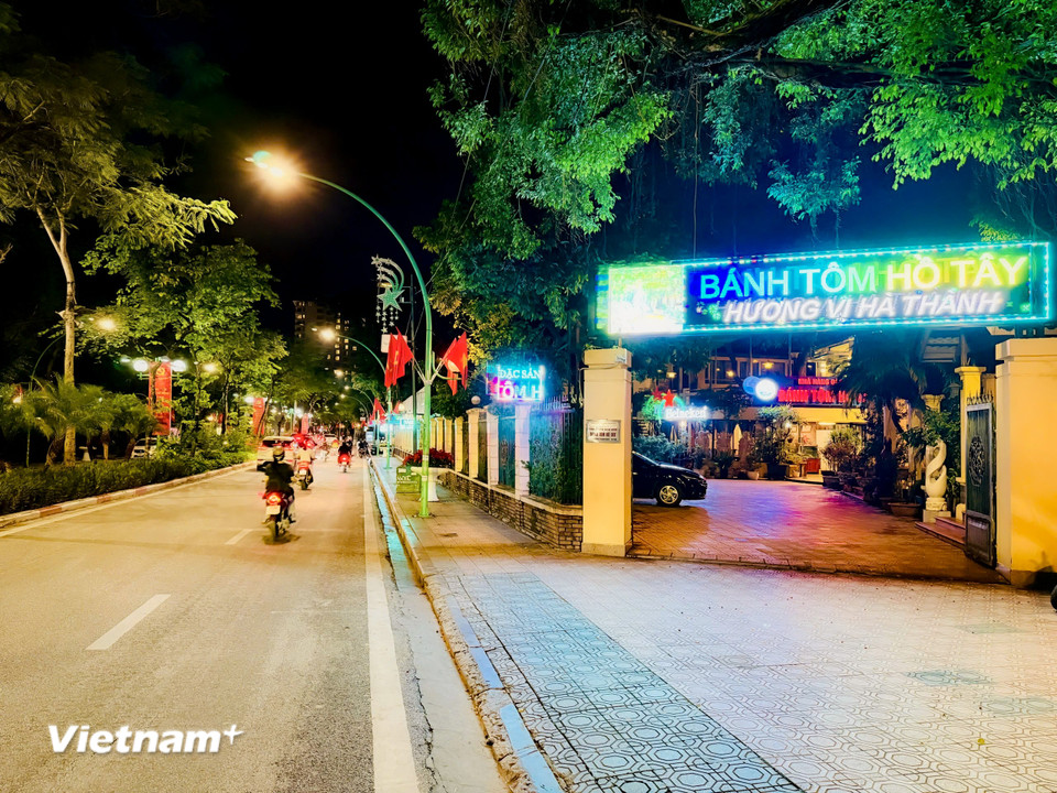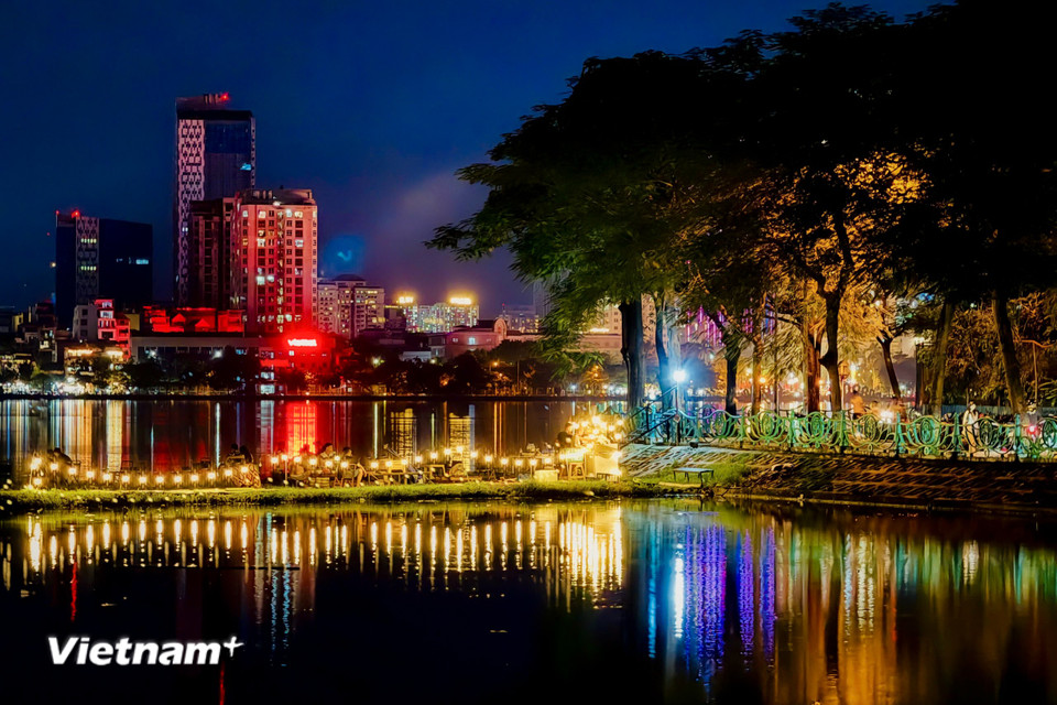 Những ánh đèn phản chiếu trên mặt hồ, các hàng quán ăn vặt và cà phê đêm tạo nên một bức tranh đầy sức hút. (Ảnh: Trần Hương Sơn/Vietnam+)