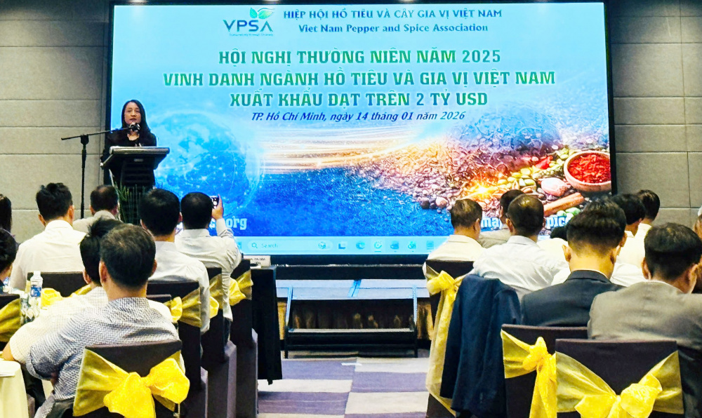 Ngày 14/01/2026 tại TP. Hồ Chí Minh, Hiệp hội Hồ tiêu và cây gia vị Việt Nam (VPSA) tổ chức Hội nghị Thường niên nhằm tổng kết tình hình ngành hàng và hoạt động của Hiệp hội trong năm 2025, đồng thời vinh danh ngành Hồ tiêu và gia vị Việt Nam xuất khẩu đạt mức kỷ lục trên 2 tỷ USD.