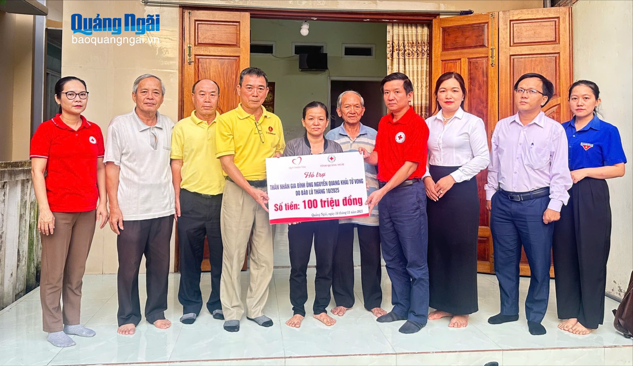 Trước đó, chiều 14/11, Hội Chữ thập đỏ tỉnh phối hợp với Quỹ Thiện Tâm (Tập đoàn Vingroup) và chính quyền địa phương đã đến thăm viếng, chia buồn và trao hỗ trợ 100 triệu đồng/gia đình cho 2 trường hợp tử vong do bão lũ vừa qua tại phường Trà Câu và xã An Phú. Nguồn hỗ trợ góp phần giúp các gia đình vượt qua nỗi đau, dần ổn định cuộc sống trong thời gian tới.