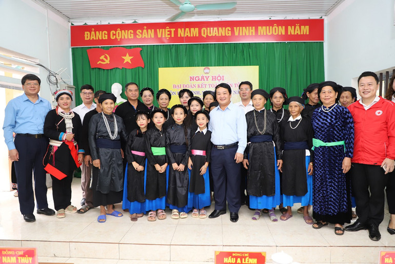 Bí thư Tỉnh ủy Tuyên Quang Hầu A Lềnh đến dự và chung vui với người dân thôn Bản Hình trong Ngày hội Đại đoàn kết toàn dân tộc.