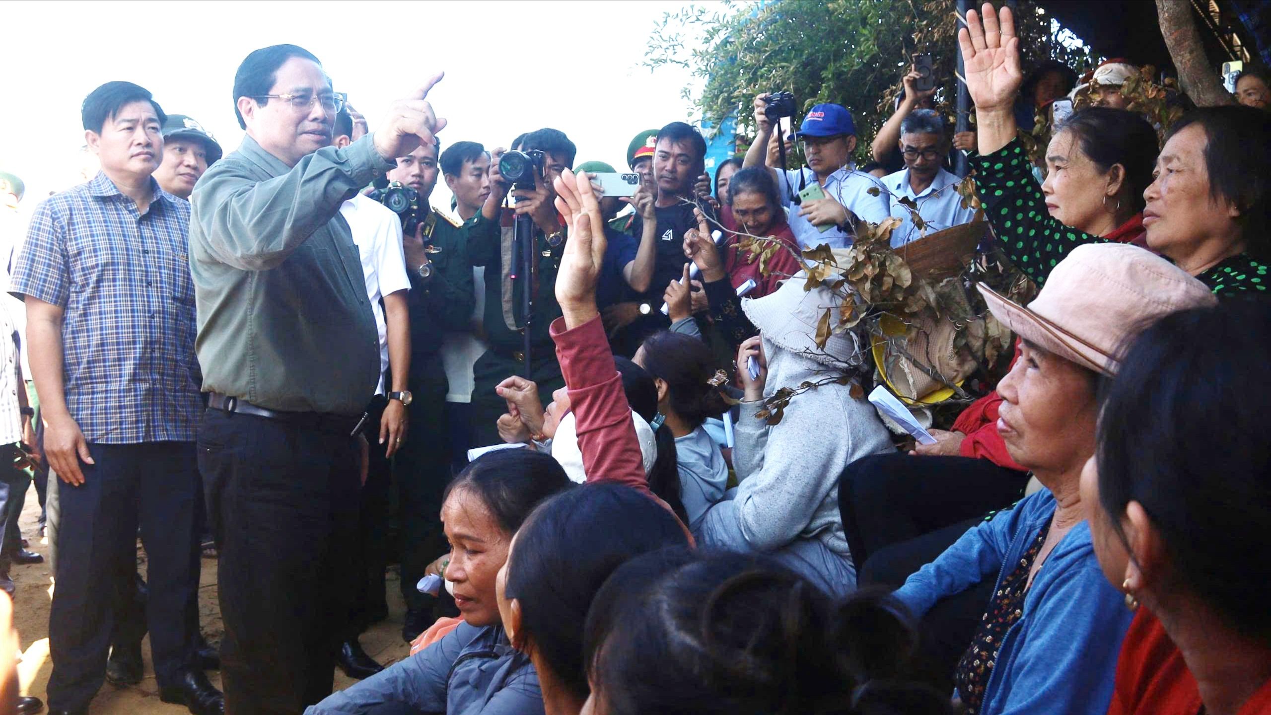 Thủ tướng nói chuyện, động viên người dân bị thiệt hại sau bão ở ven biển Gia Lai
