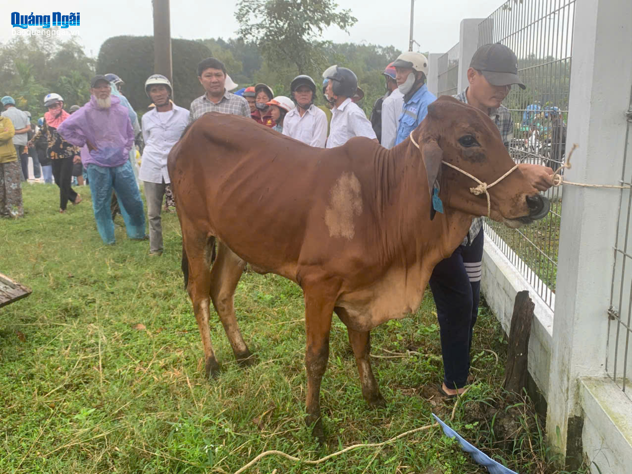 Đợt này, xã Bình Sơn hỗ trợ bò cho 77 hộ nghèo, cận nghèo, gia đình chính sách khó khăn và hộ mới thoát nghèo, thoát cận nghèo từ năm 2023. Mỗi hộ gia đình được nhận một con bò cái giống Zebu sinh sản (trị giá 24,6 triệu đồng/con) và được hỗ trợ thuốc sát khuẩn chuồng trại chăn nuôi.