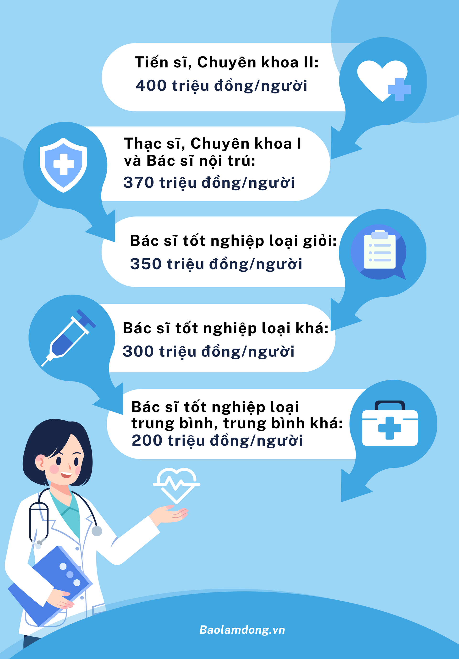 Mức hỗ trợ một lần để thu hút 22 bác sĩ (hạng III) làm việc tại Trung tâm Kiểm soát bệnh tật tỉnh Lâm Đồng; các Trung tâm Y tế khu vực Cư Jut, Krông Nô, Đắk Mil, Đắk Song, Gia Nghĩa, Đắk Glong, Đắk R'Lấp, Tuy Đức.