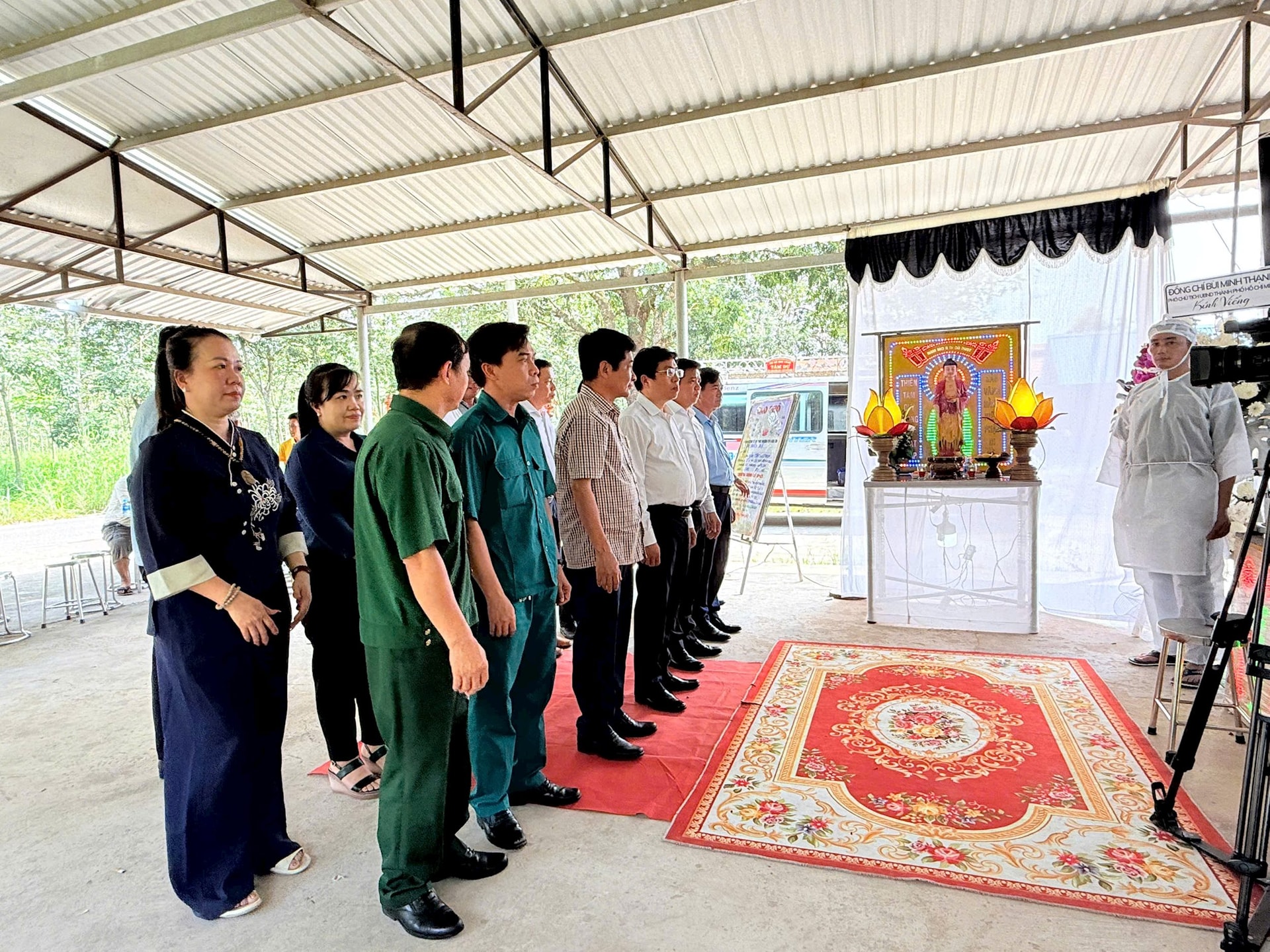 Tại lễ viếng, đoàn đã thắp hương, chia sẻ mất mát, động viên thân nhân vượt qua nỗi đau, sớm ổn định cuộc sống.