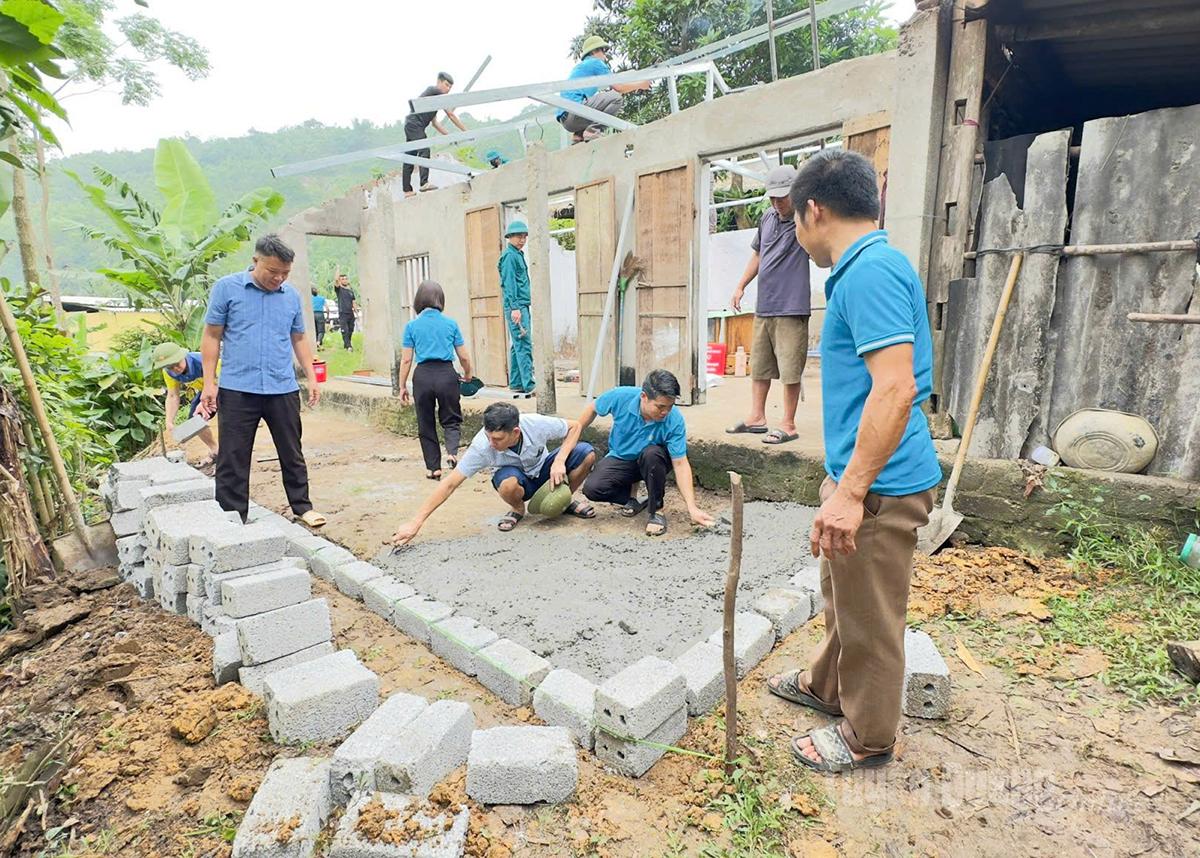 Cán bộ xã Phú Lương hỗ trợ người dân xóa nhà tạm nhà dột nát.