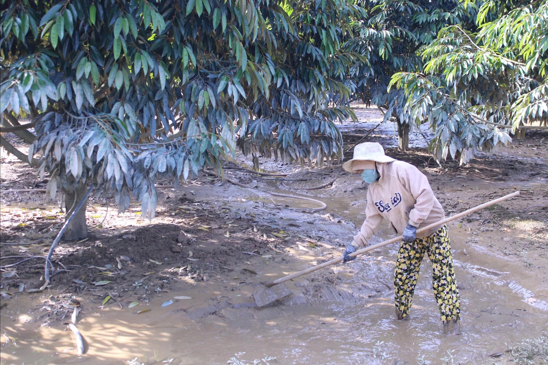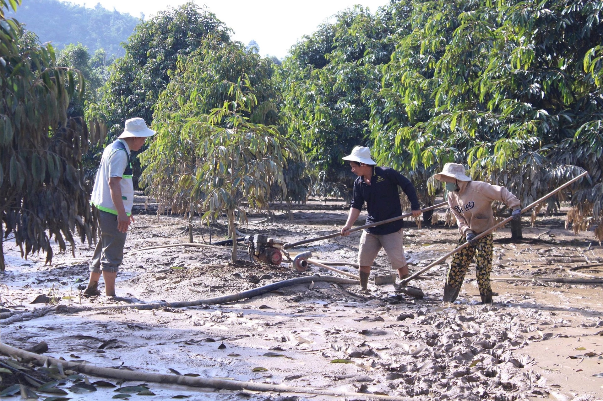 Hậu quả, vườn cây sầu riêng đang chuẩn bị tạo mầm, làm bông, trái và vừa đầu tư phân bón đều bị trôi, thiệt hại. Do đó, thời điểm này hộ dân cần hỗ trợ các biện pháp giữ cây.