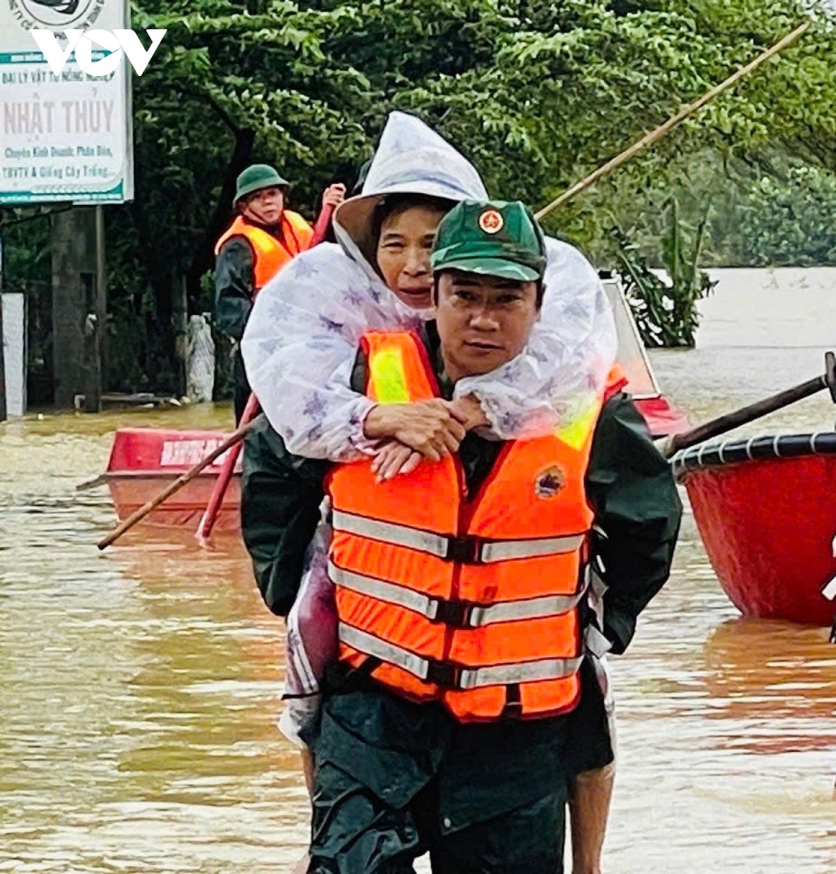 Bộ đội hỗ trợ sơ tán trước người già và trẻ nhỏ