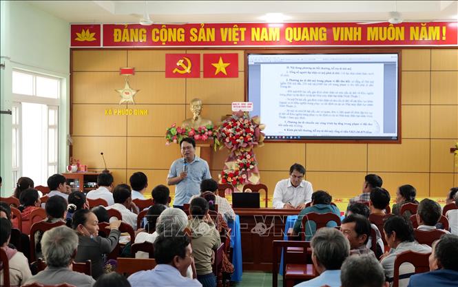 Tại UBND xã, 118 người là đại diện thân nhân và một tổ chức đã được lãnh đạo UBND xã Phước Dinh thông tin cụ thể mức giá bồi thường, hỗ trợ di dời mộ áp theo mức giá đơn bồi thường, hỗ trợ một số chi phí khi Nhà nước thu hồi đất trên địa bàn tỉnh.