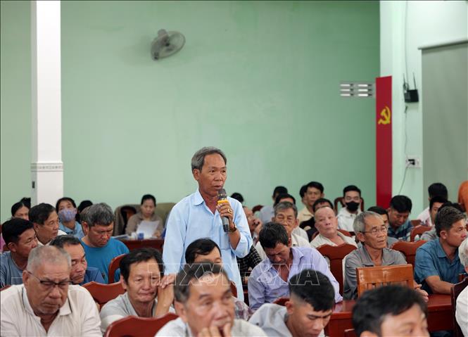 Ông Đặng Gia Thuận, Phó Chủ tịch UBND xã Phước Dinh trả lời kiến nghị của người dân có mộ cần di dời để giải phóng mặt bằng dự án Nhà máy điện hạt nhân Ninh Thuận 1.