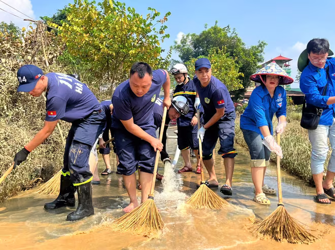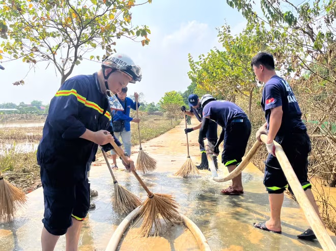 Ngay từ sáng sớm, đoàn công tác của Phòng Cảnh sát PCCC và CNCH do Trung tá Nguyễn Tuấn Dương - Phó Trưởng phòng làm trưởng đoàn đã có mặt tại xã Trung Giã, phân công cán bộ chiến sỹ (CBCS) chia làm 10 tổ công tác xuống từng địa bàn thôn, xóm khẩn trương tham gia dọn dẹp bùn đất, thu gom rác thải, vận chuyển đồ đạc giúp dân.