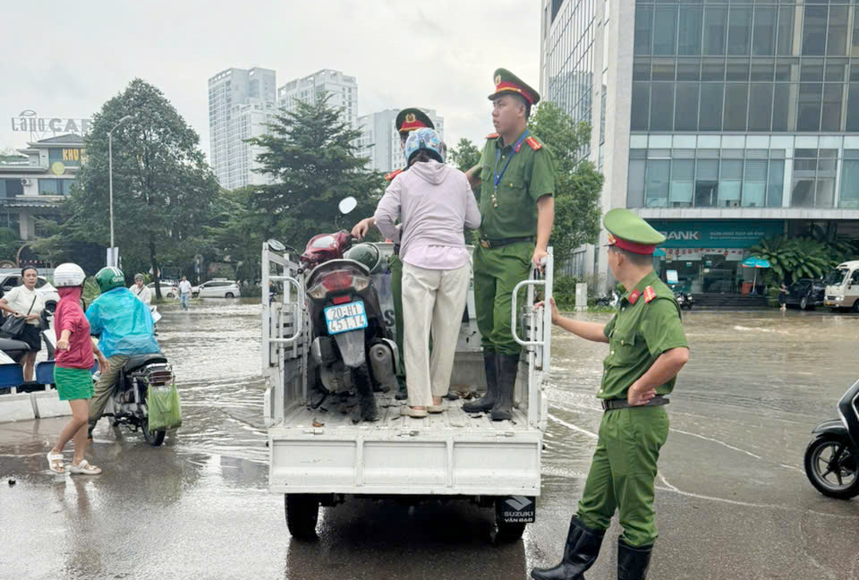 Trước tình huống này, Công an phường Xuân Đỉnh đã bố trí xe chuyên dụng hỗ trợ nhân dân