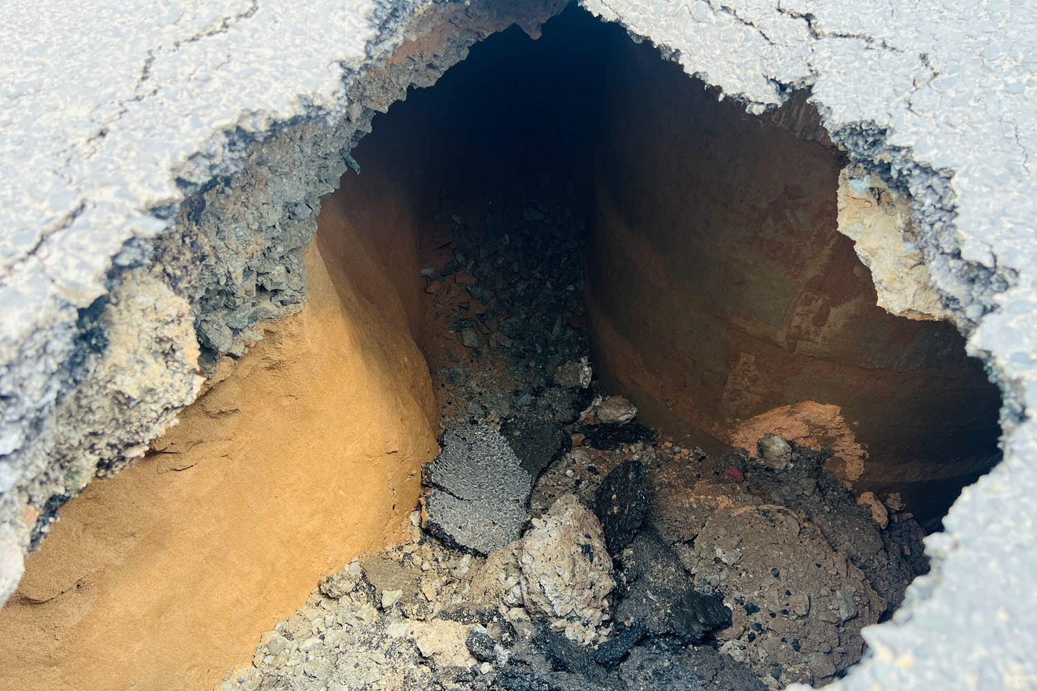 Theo quan sát, hố sâu này có chiều dài khoảng 1m, rộng 50cm, chiều sâu khoảng 2,5m. Lớp nhựa trên mặt đường đoạn gần hố có hiện tượng bị sụt lún thêm. Ngoài ra, bên cạnh hố sâu này có một đường cống thoát nước lớn.