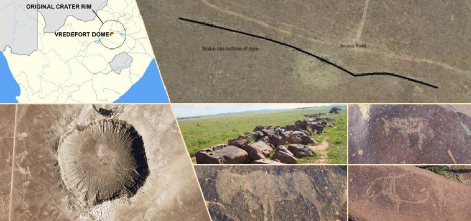 Xung quanh miệng hố va chạm Vredefort ở Nam Phi này, các chuyên gia đến từ trường Đại học Free State bất ngờ tìm thấy nhiều di tích lạ trên những dải đê đá rải rác bao quanh miệng hố. Ảnh: @Đại học Free State.