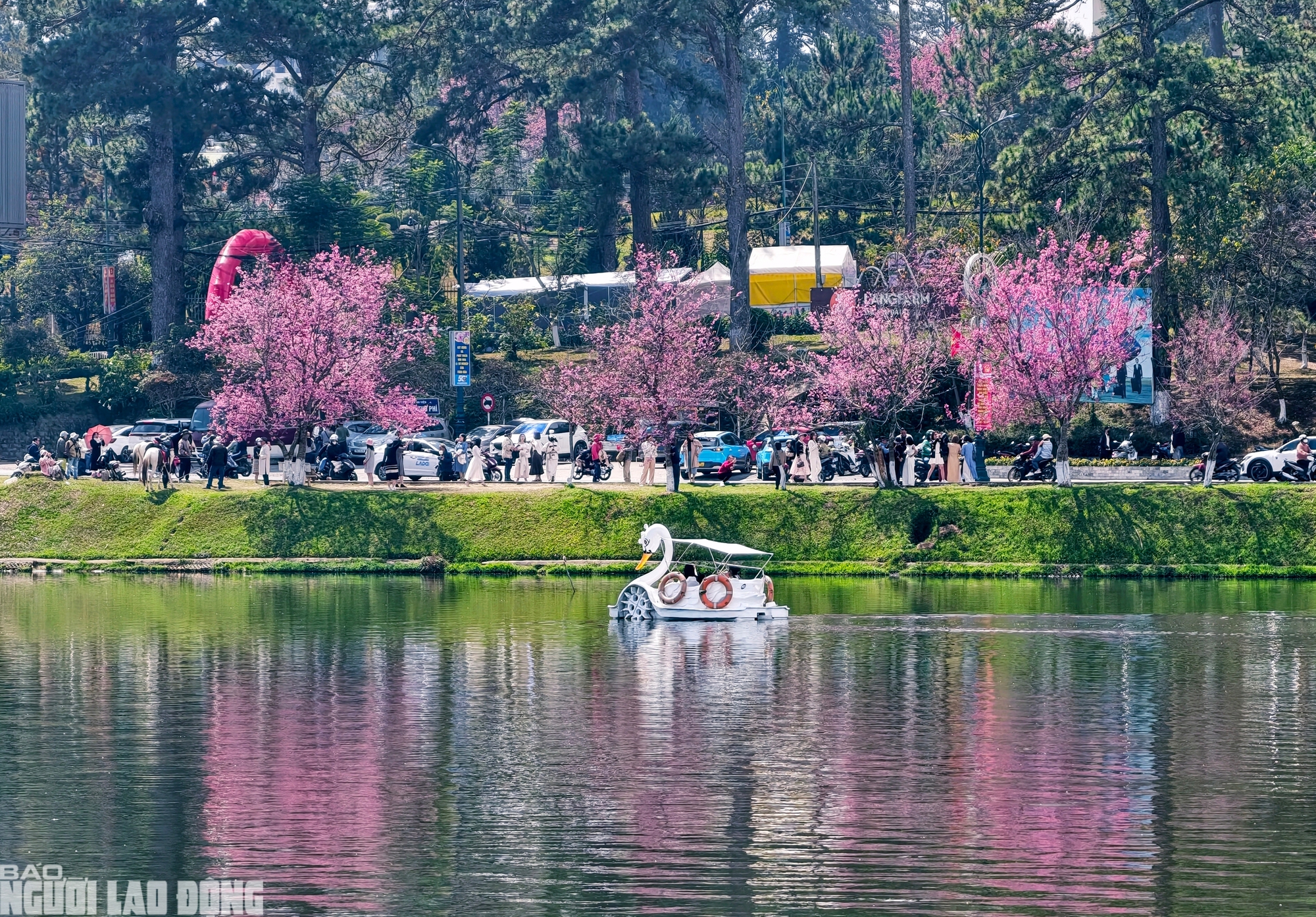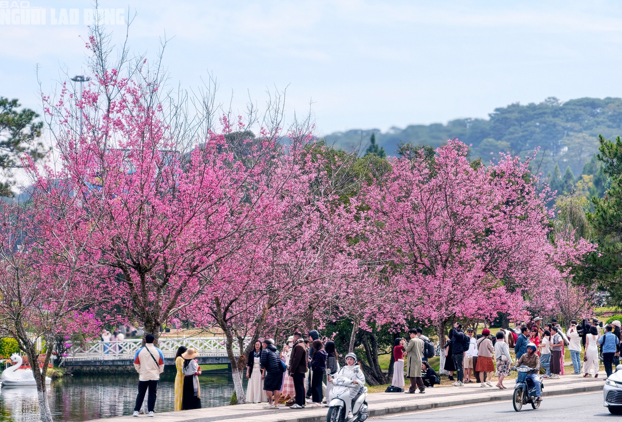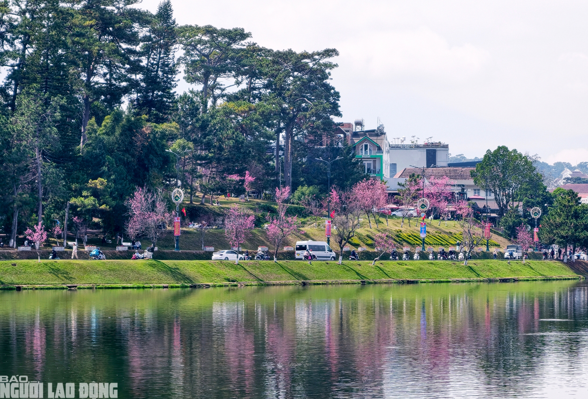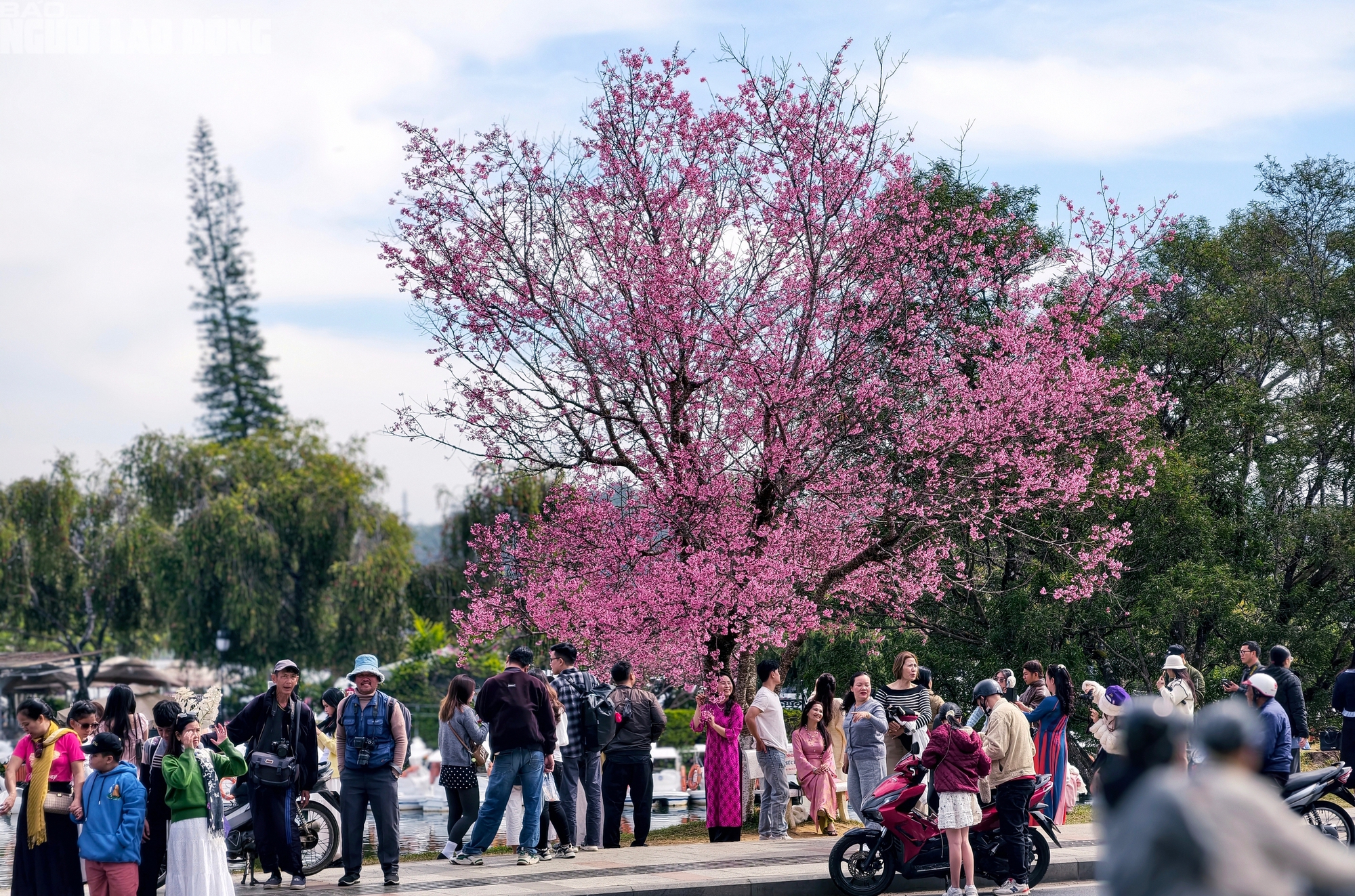 Mai anh đào rực rỡ góp phần thu hút du khách đến với thành phố ngàn hoa. Trong đó, hàng cây cạnh nhà hàng Thủy Tạ bung nở rất đẹp, mỗi ngày thu hút ngàn ngàn người dân và du khách đến chen chân chụp ảnh.