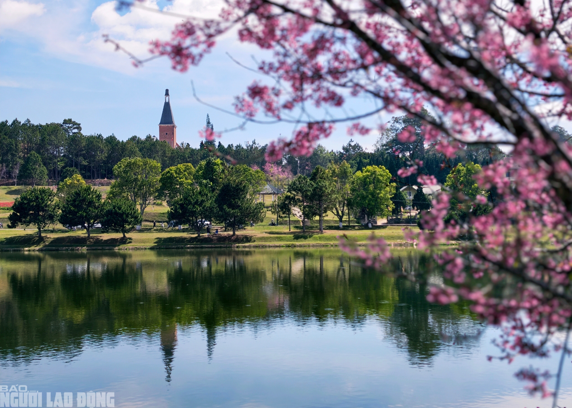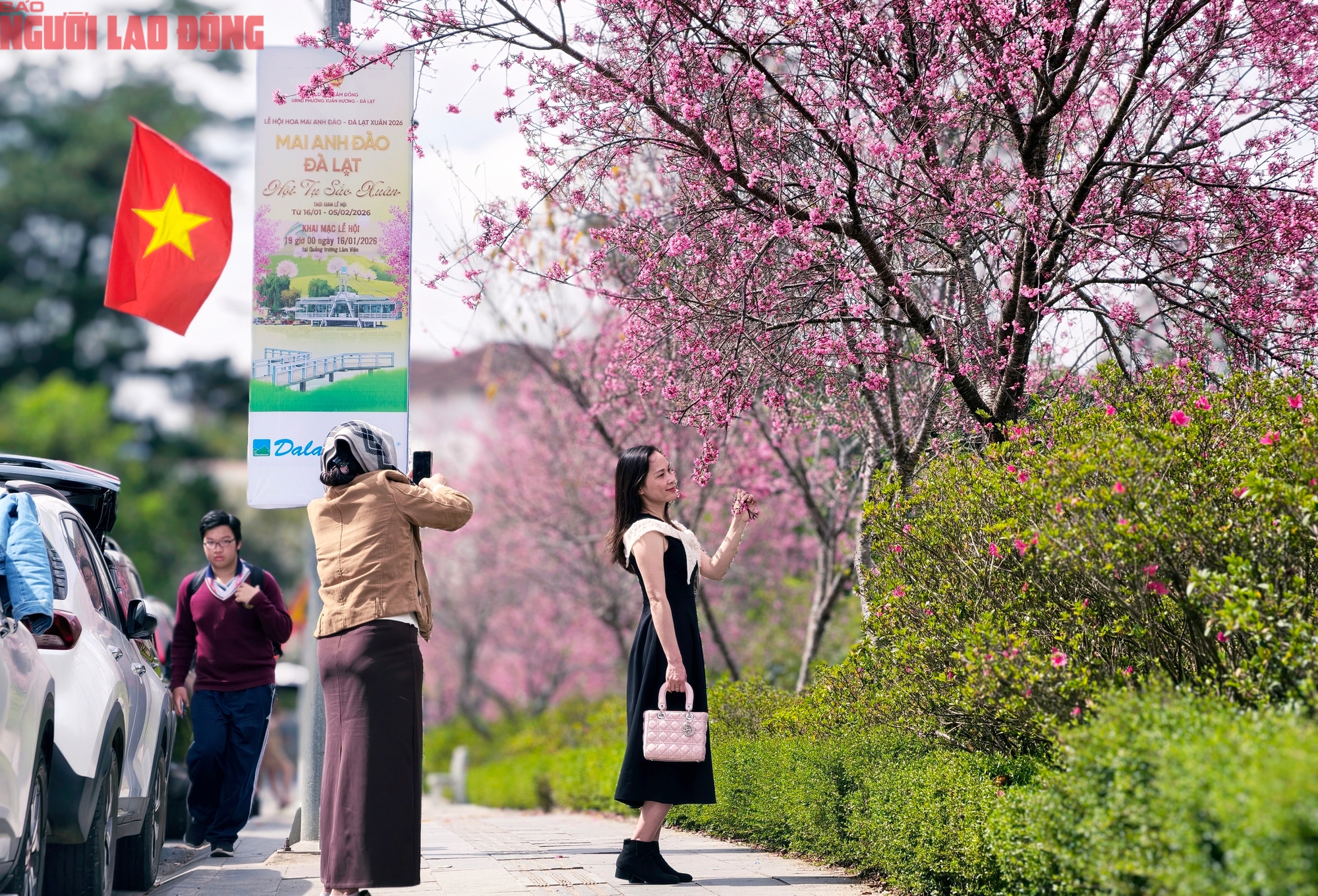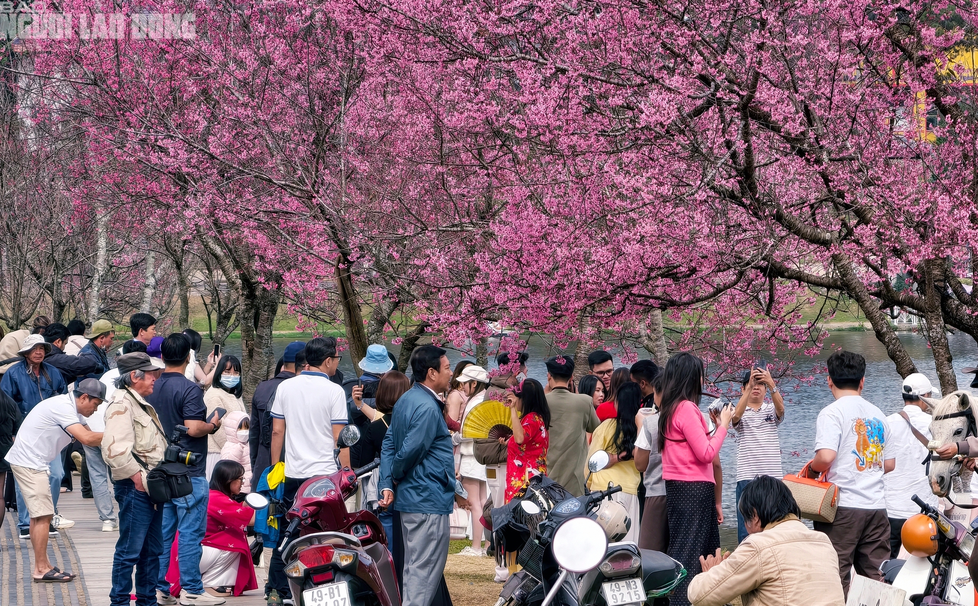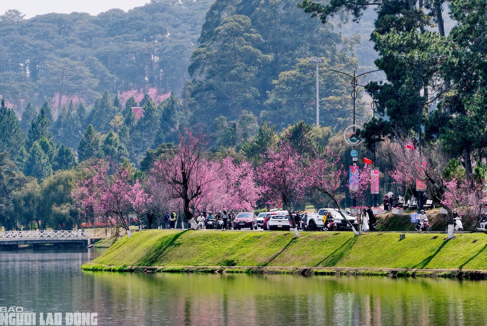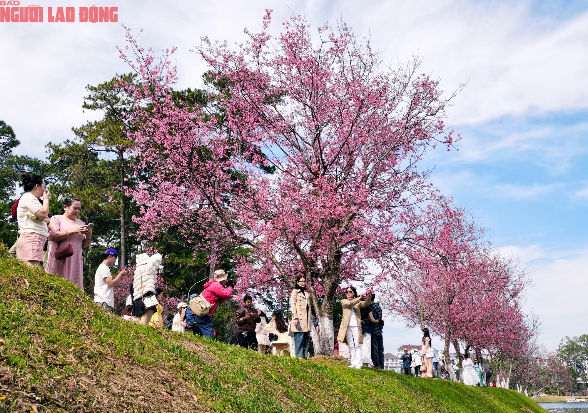 Mai anh đào rực rỡ góp phần thu hút du khách đến với thành phố ngàn hoa. Trong đó, hàng cây cạnh nhà hàng Thủy Tạ bung nở rất đẹp, mỗi ngày thu hút ngàn ngàn người dân và du khách đến chen chân chụp ảnh.