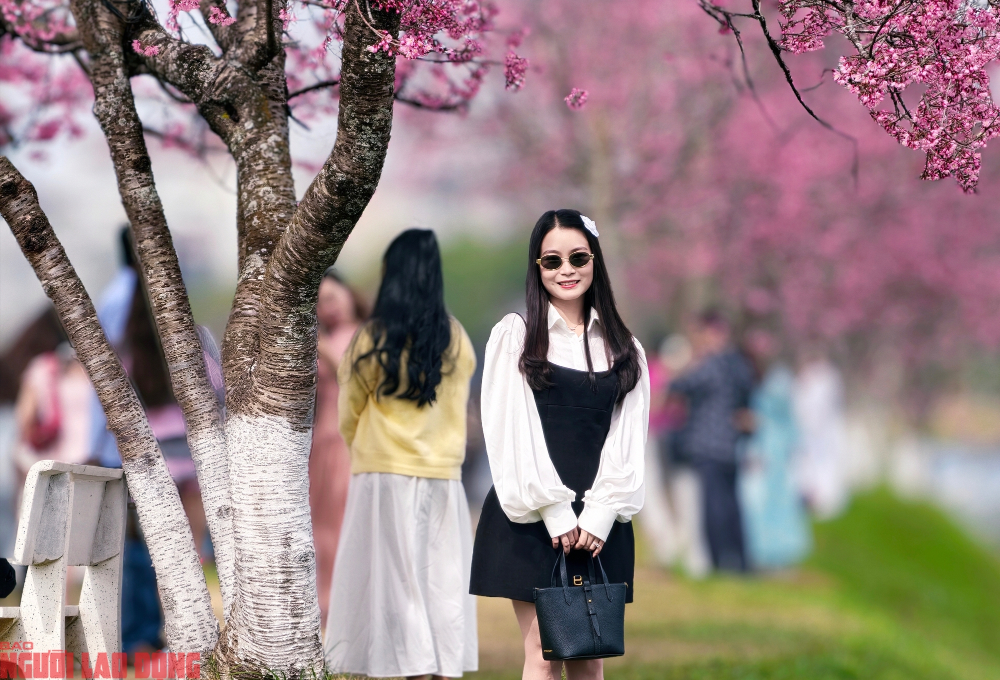 Nếu không muốn phải chờ lâu, người dân và du khách có thể chọn những gốc mai anh đào đang nở khác cùng góc ảnh khác để lưu lại khoảnh khắc đến với mùa xuân Đà Lạt.