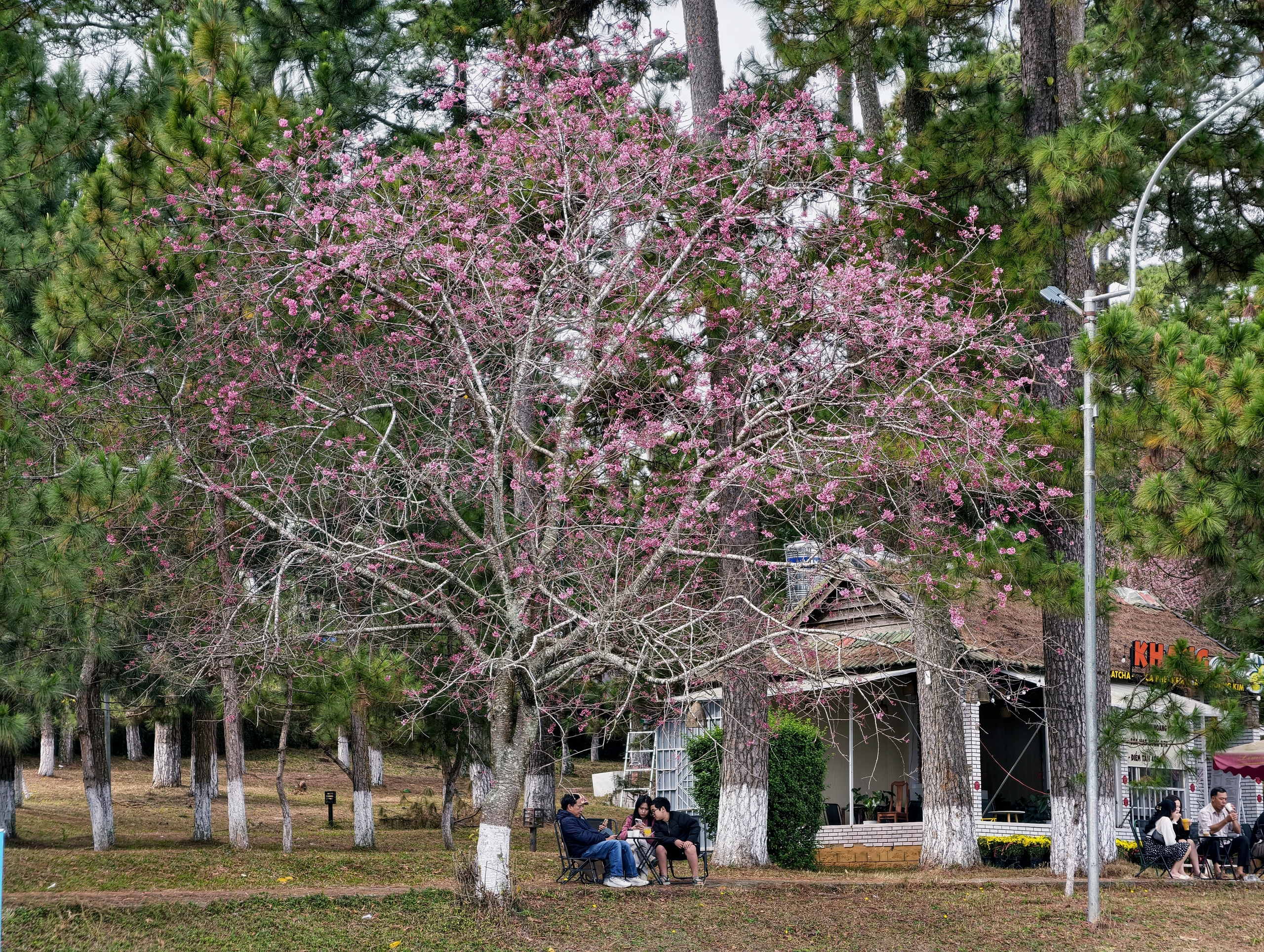 Nếu đã đến Đà Lạt thời điểm này, ngoài việc dạo hồ Xuân Hương thì trải nghiệm cảm giác ngồi uống cà phê dưới tán hoa mai anh đào cũng rất thú vị mà du khách không nên bỏ lỡ.